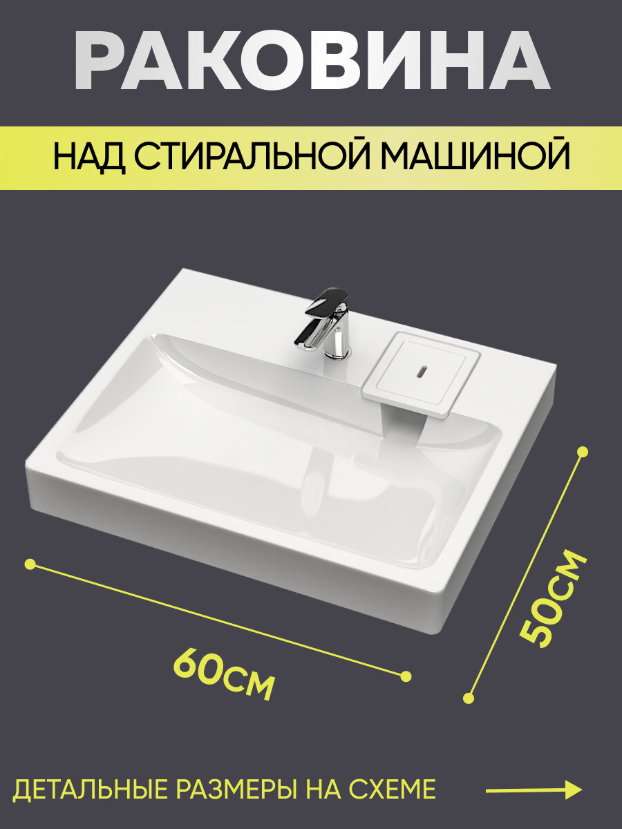 Раковина над стиральной машиной V53, искусственный камень, 60x55x10 см