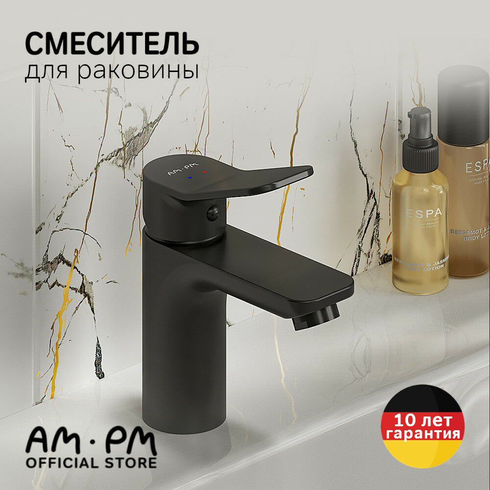 Купить Смеситель для раковины в ванную черный AM.PM Brava, излив 100 мм, кран для ванной, керамический картридж Soft Motion