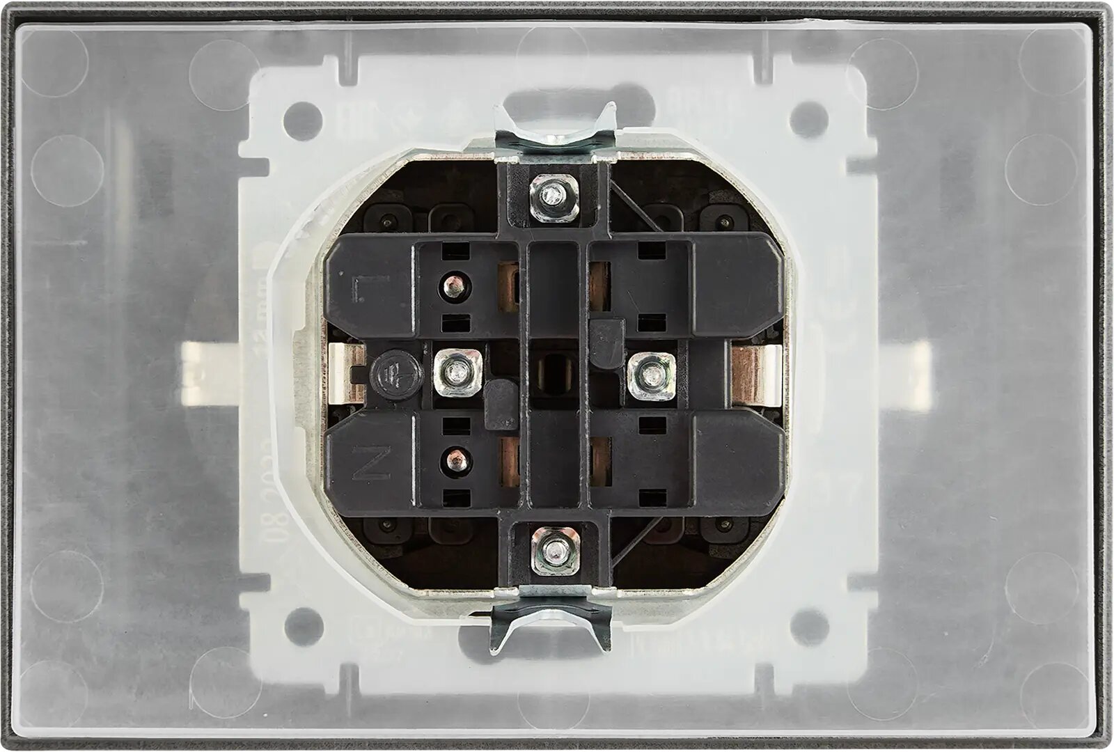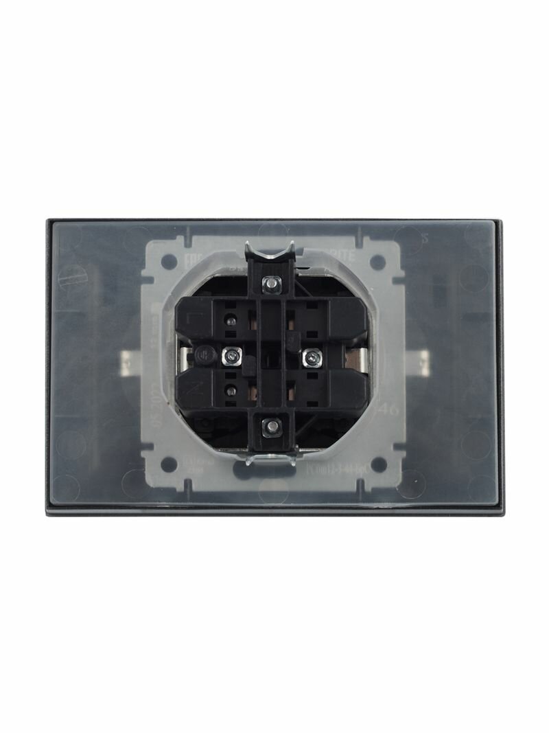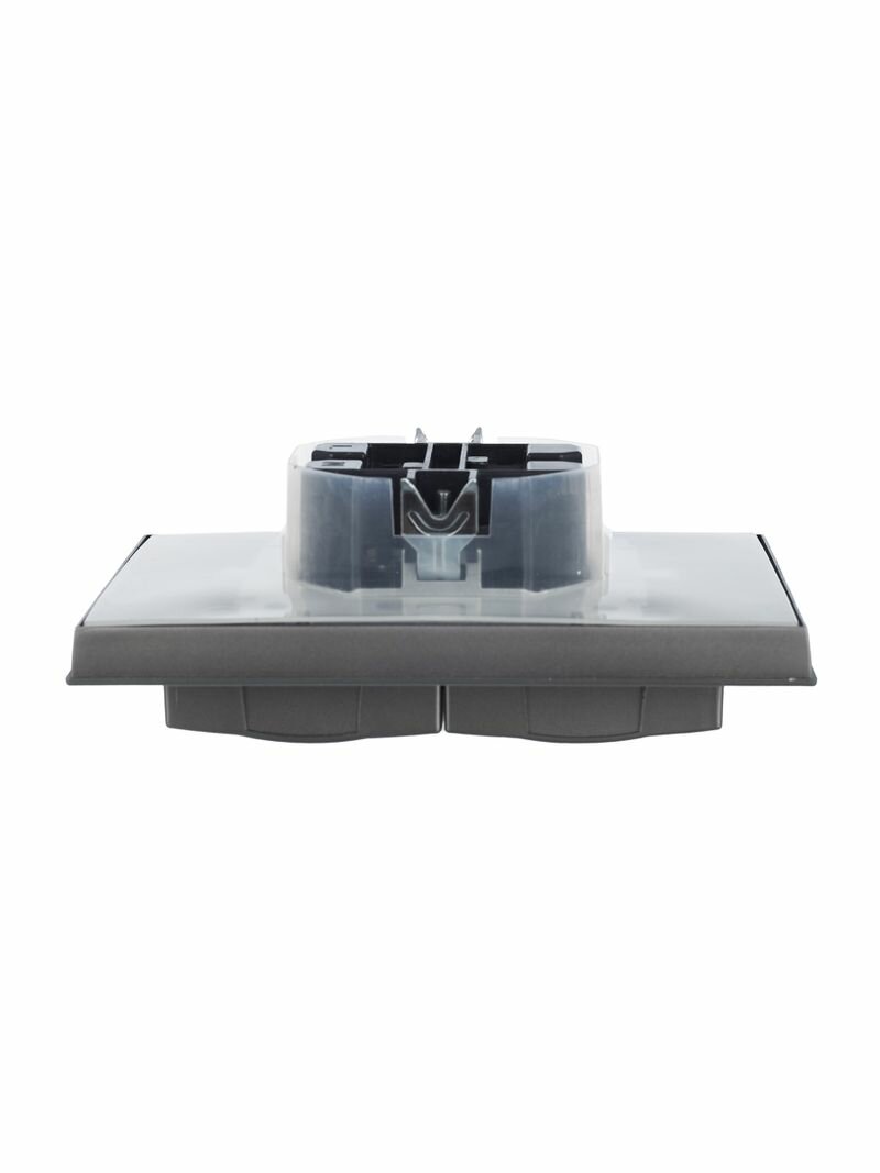 BRITE Розетка 2-местная с заземлением с защитными шторками и крышкой 16А в сборе IP44 РСбш12-3-44-БрГ графит