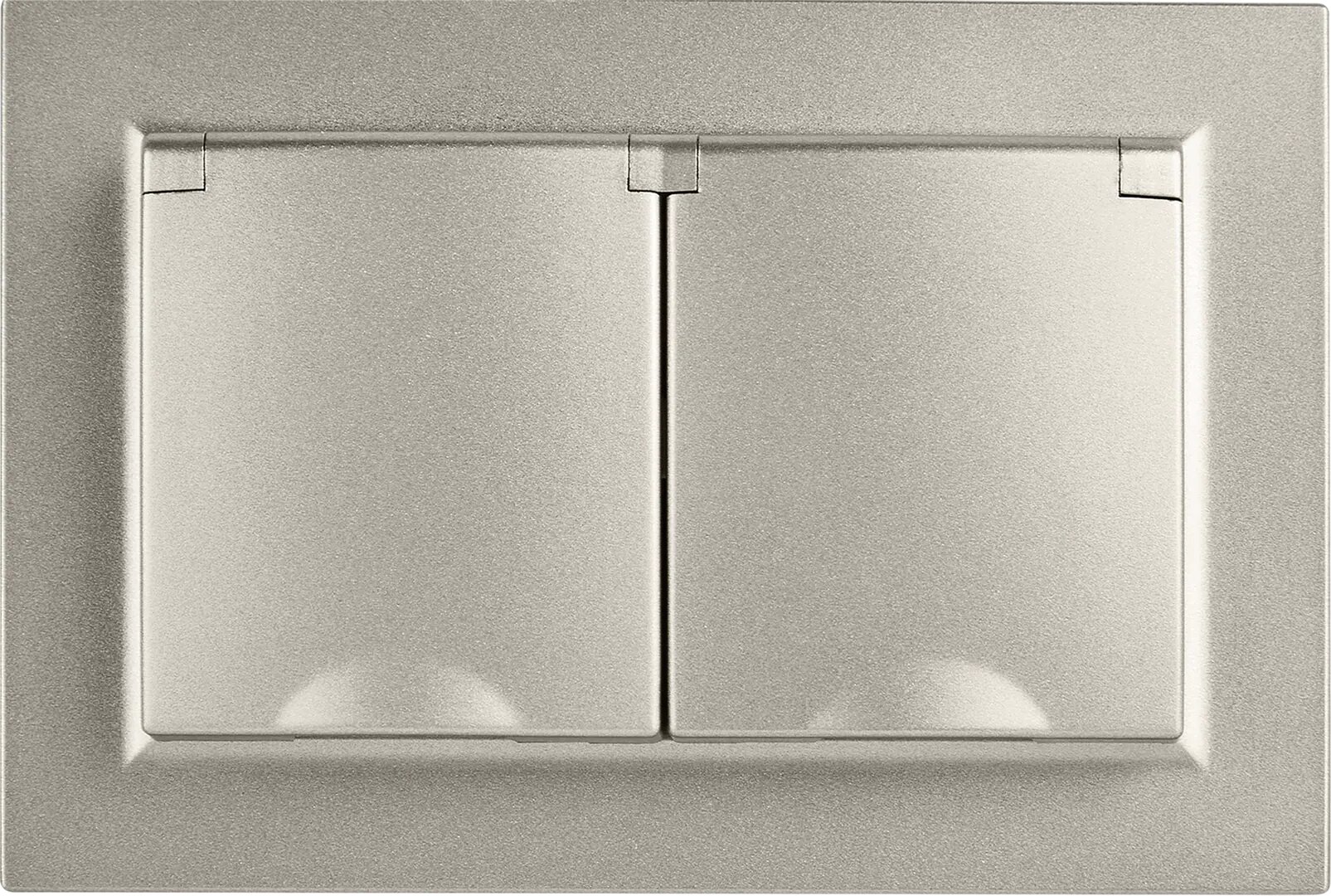 Розетка двойная с заземлением с защитными шторками и крышкой 16А в сборе IP44 алюминий BRITE, IEK BR-R26-16-44-K47-F (1 шт.)