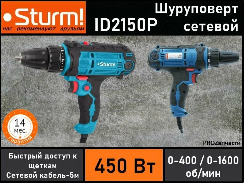 Дрель шуруповерт STURM ID2150P Проф, 2 скор, патрон 10 мм, 22+1, 45 Нм, шнур 5 М интересное: