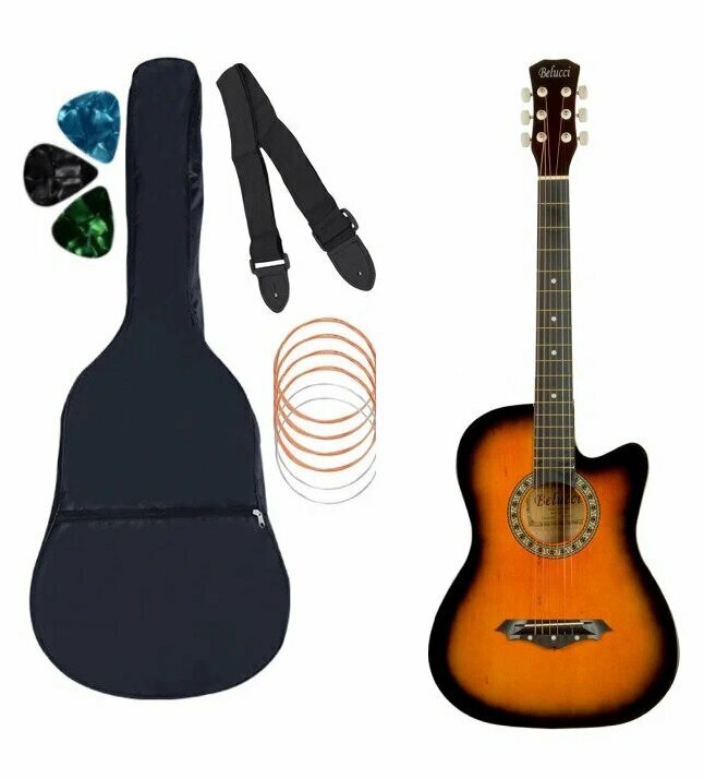 СохранитьГитара акустическая 7/8 Belucci BС3810 в комплекте: Чехол, Ремень, 6 Струн, Медиаторы. санберст, глянцевая 38" интересное: