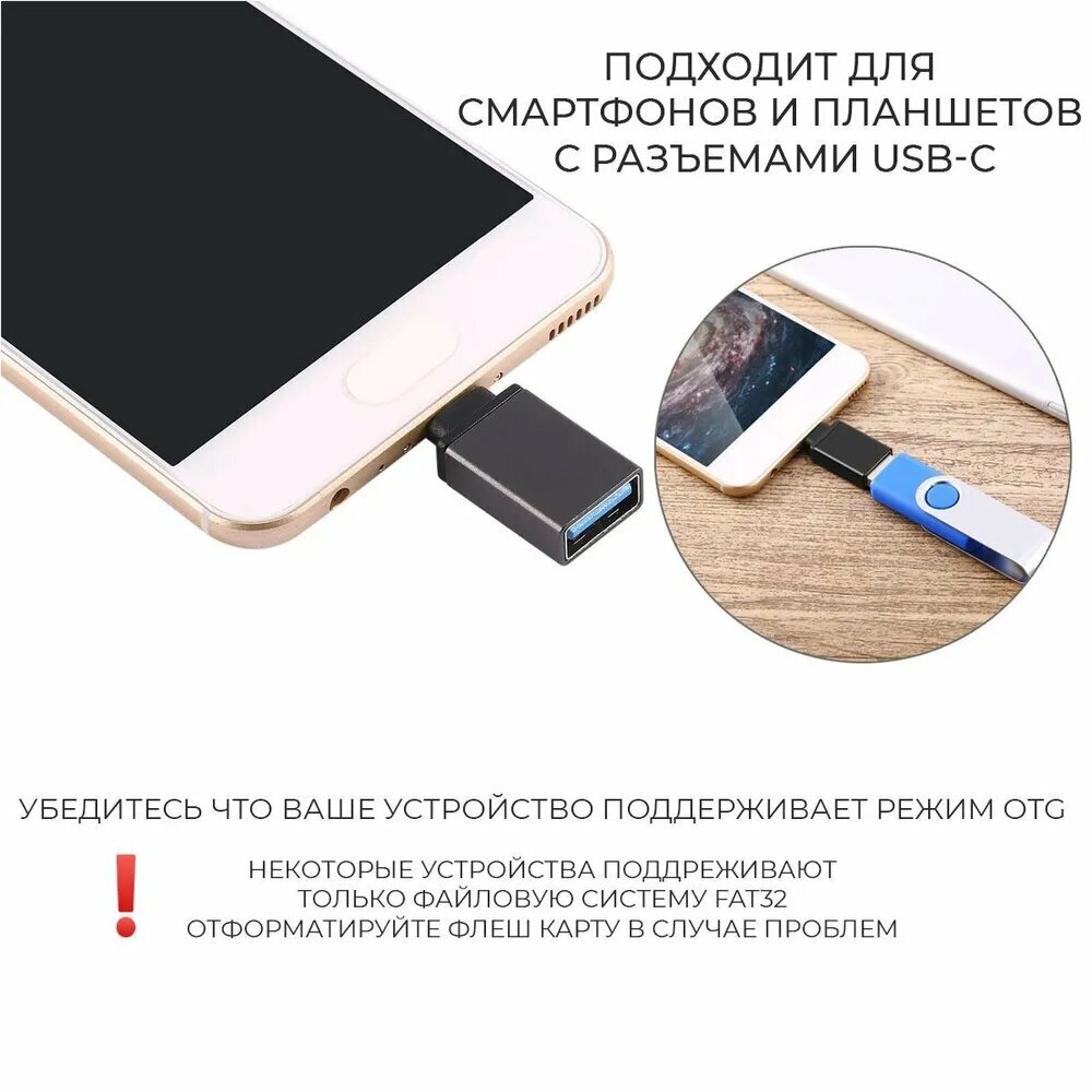 Переходник Адаптер OTG с USB 3.0 на Type-C, для Смартфонов, для Ноутбуков, для Флешек, Тайпси на ЮСБ, P-34 черный