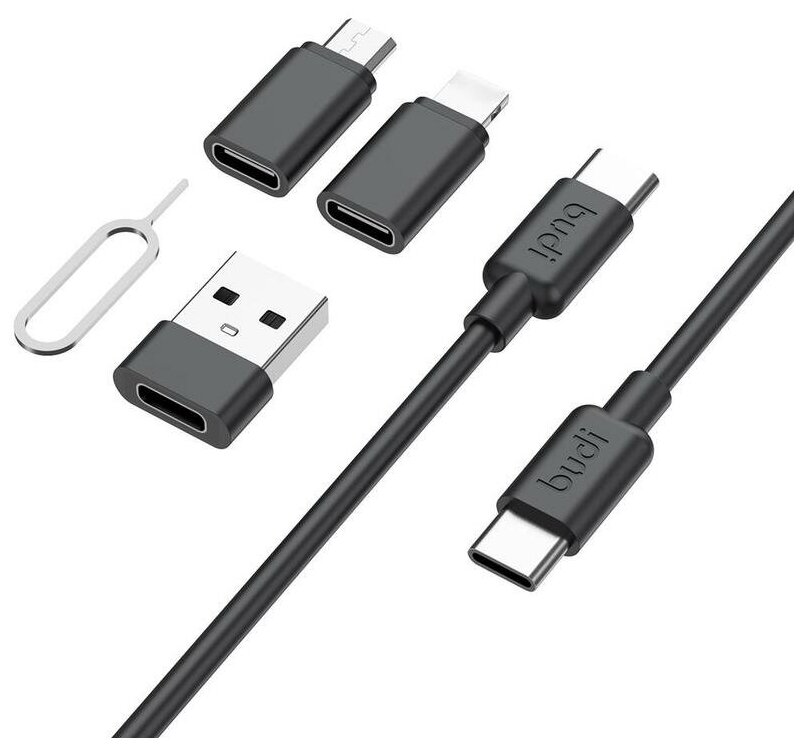 Кабель 6 в 1 USB-C - USB-C со сменными адаптерами Lightning, Micro USB, USB-A, 0,6 м, 2.4А