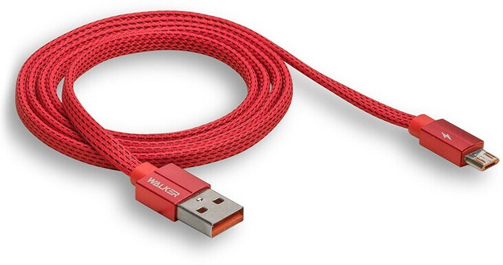 Кабель USB-Micro с быстрым зарядом, WALKER C735, 3.1А, 1 м, силиконовая оплетка, кабель, шнур usb для телефона, планшета, baseus, переходник, красный