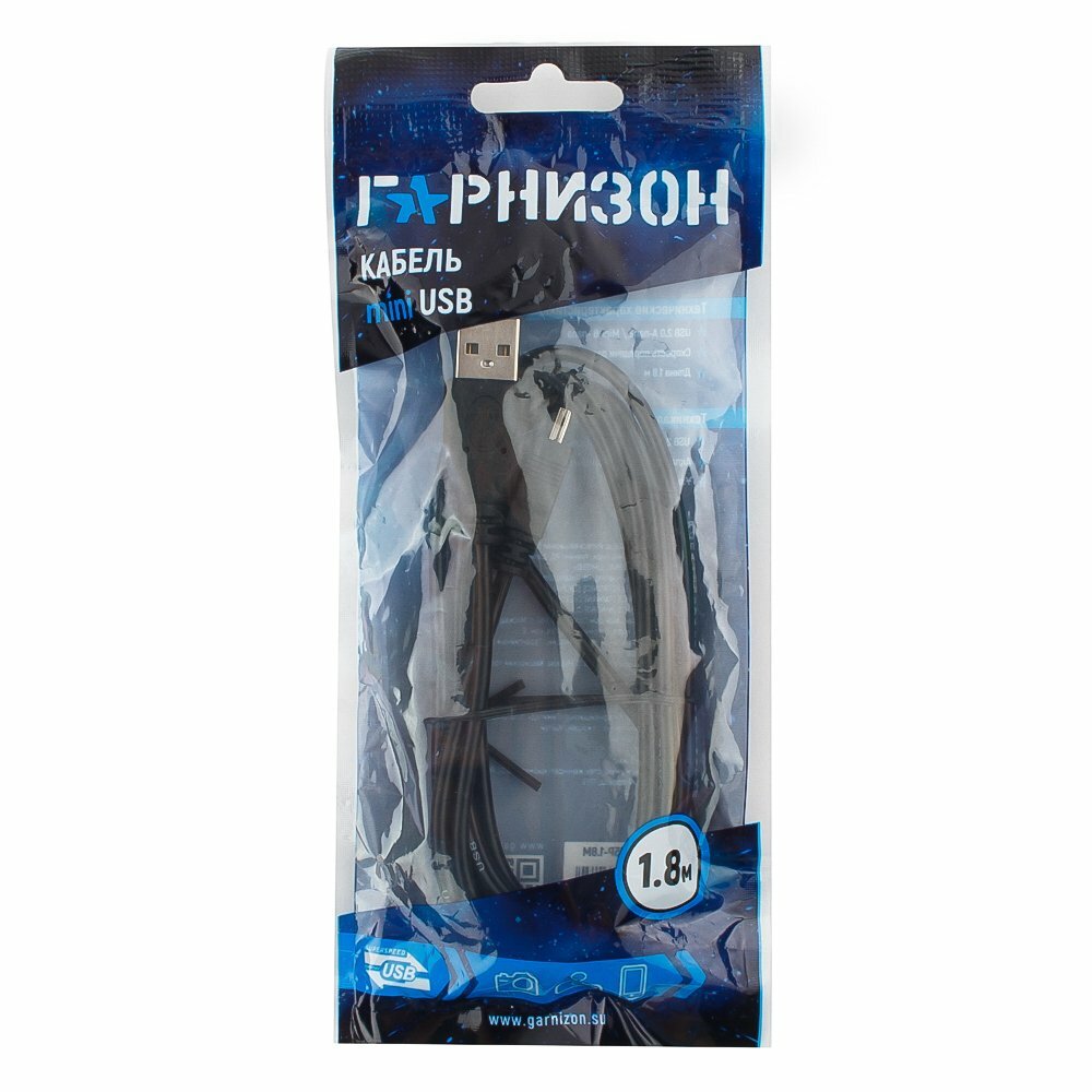Кабель USB2.0 Гарнизон черный AM/MiniUSB медный проводник 1.8 метра GCC-USB2-AM5P-1.8M интересное: