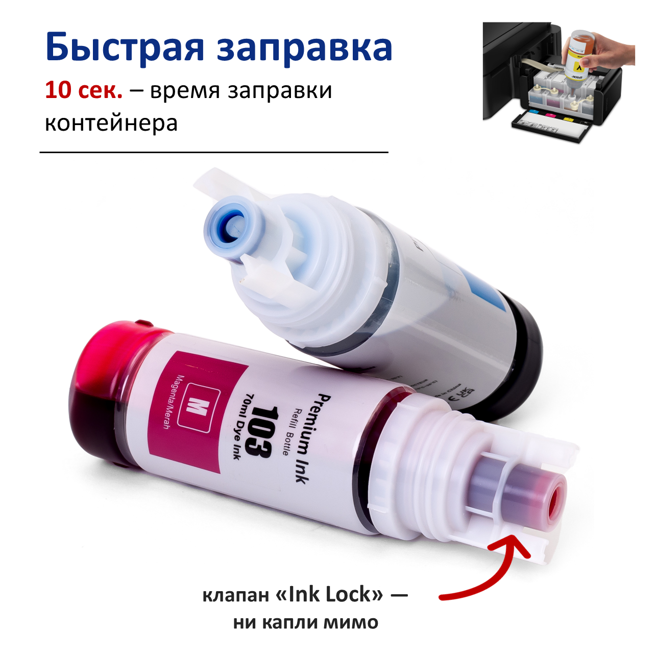 Чернила краска для принтера EPSON 103/101, набор 5х70 мл