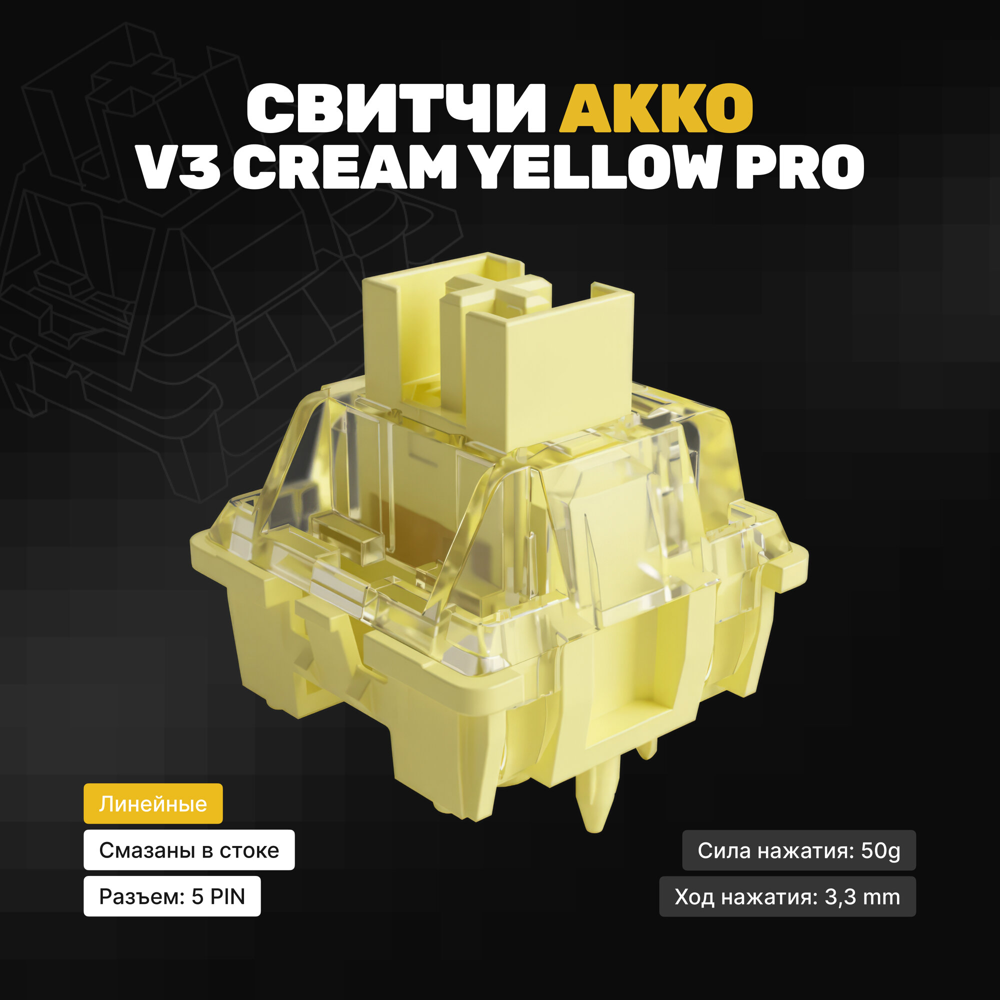 Механические переключатели (свитчи) Akko V3 Cream Yellow PRO (Линейные) 90 штук, линейные, смазаны, 5-pin, 50 грамм