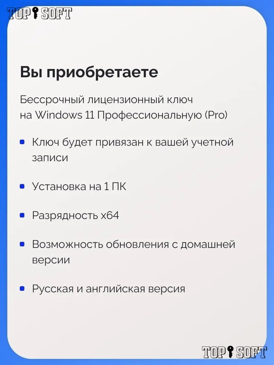 Ключ активации Windows 11 Pro ключ Microsoft (Русский язык, Бессрочная лицензия)