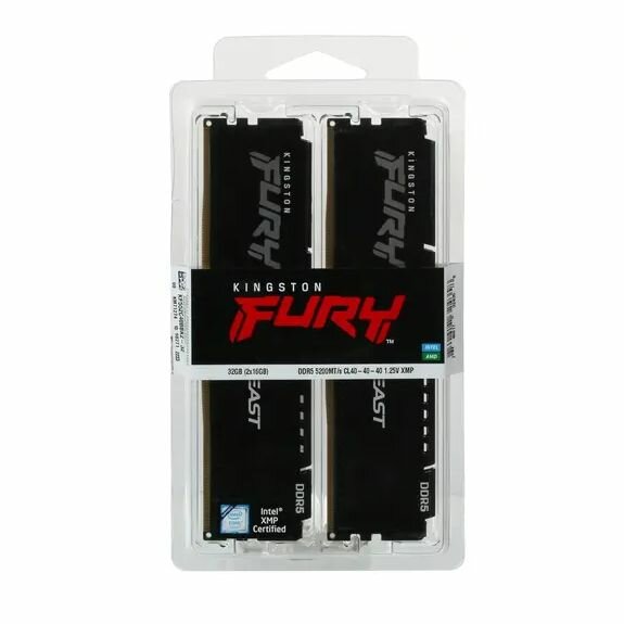 Модуль памяти Kingston Fury Beast DDR5 DIMM 5200Mhz PC-41600 CL40 - 32Gb Kit (2x16Gb) KF552C40BBK2-32