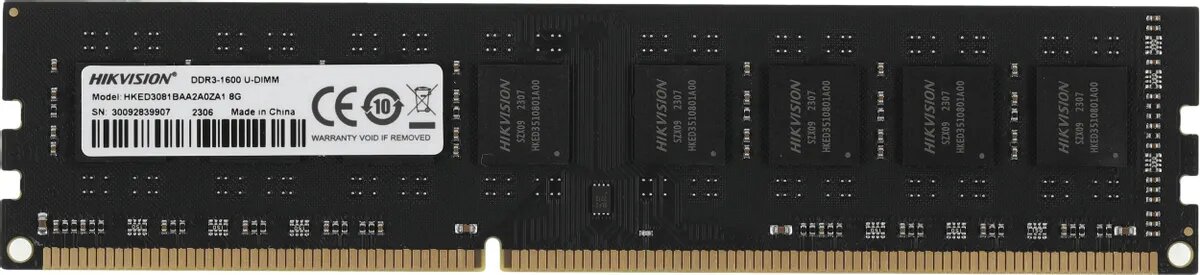 Память DIMM DDR3 PC3-12800 Hikvision HKED3081BAA2A0ZA1/8G, 8Гб, 1.5 В Кол-во модулей: 1, частота: 1600 МГц интересное: