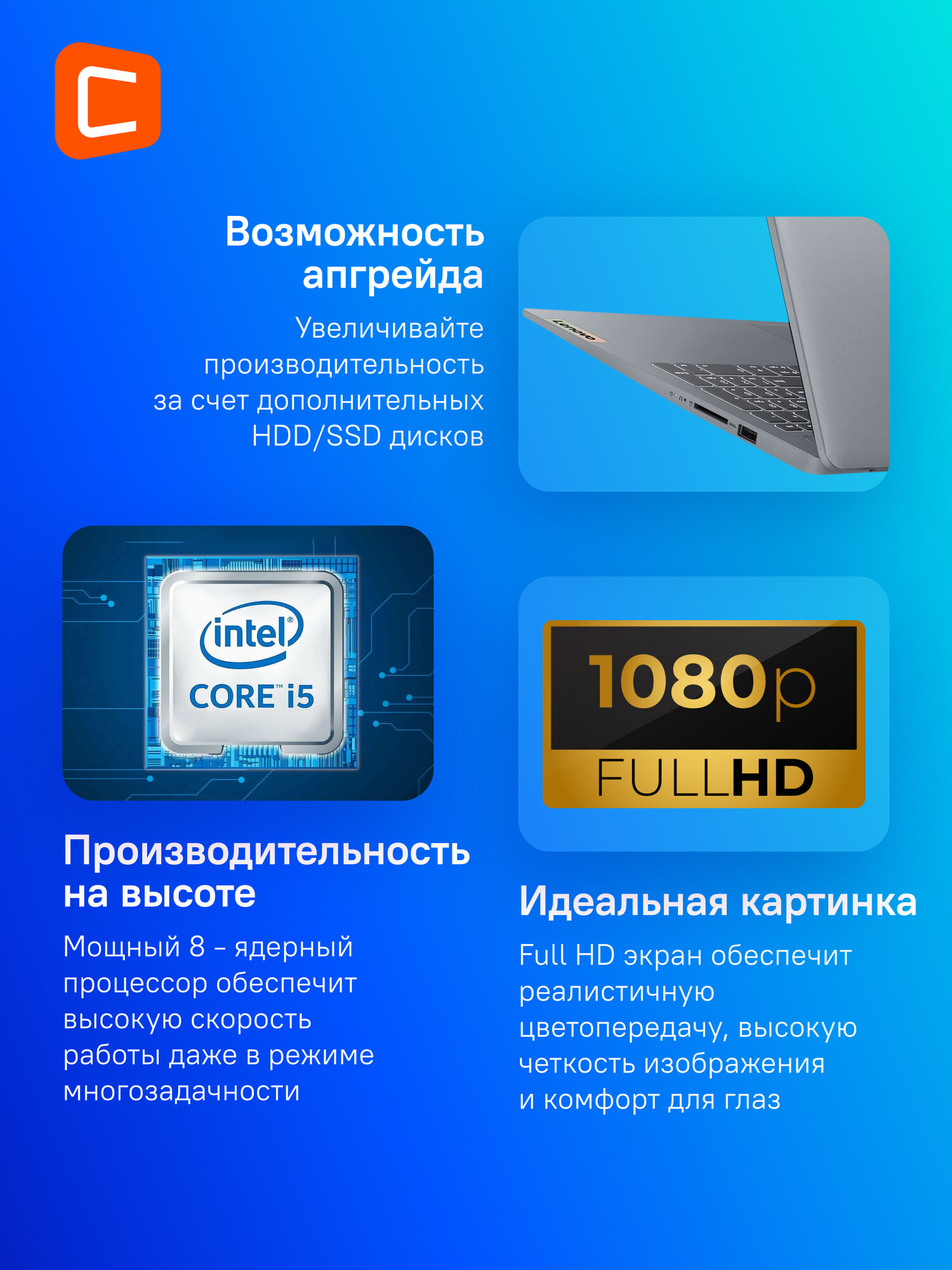 15.6" Ноутбук Lenovo IdeaPad Slim 3 15IAH8; Intel Core i5-12450H; RAM 16GB LPDDR5; SSD 512GB; NO OS; Arctic Gray; RUS KB