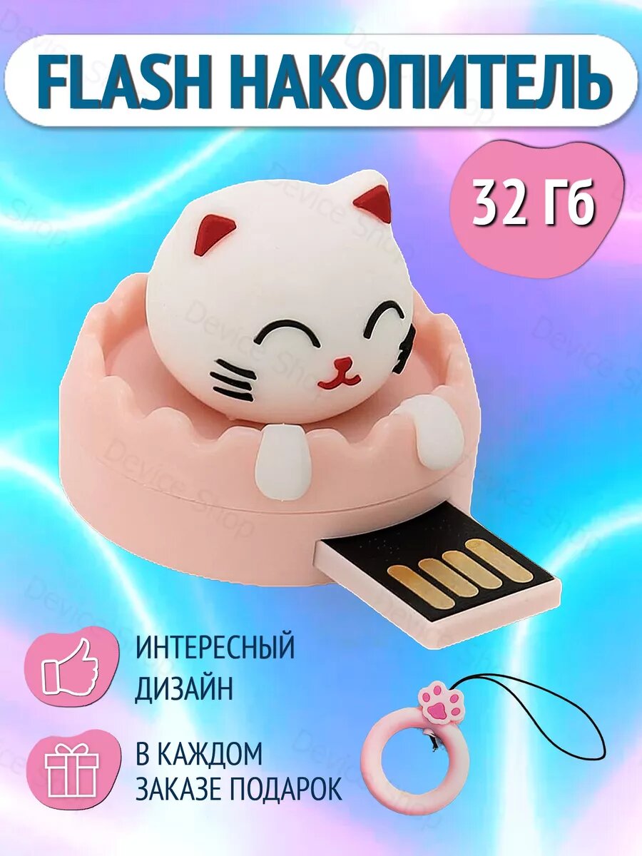 Флешка USB 32 GB подарочная в виде кошечки интересное: