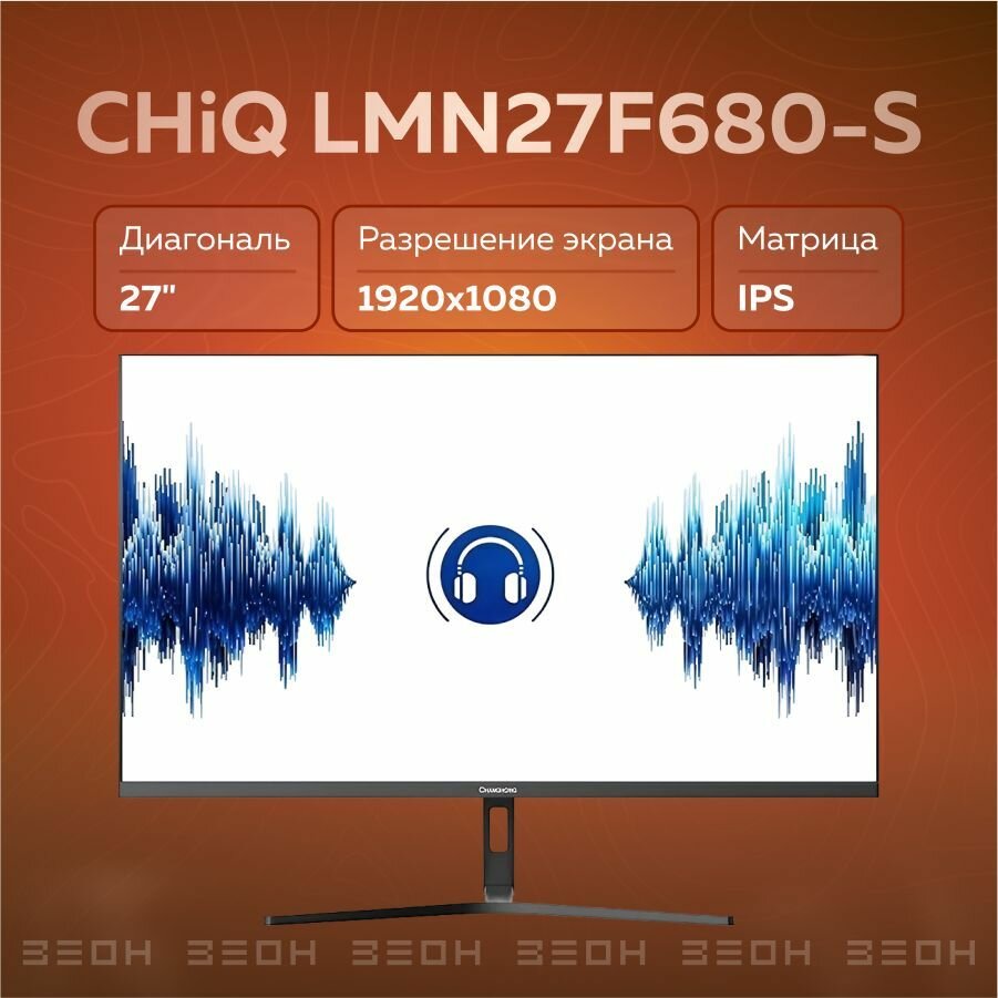 Монитор 27" CHiQ LMN27F680-S, черный матрица: IPS, 1920x1080, разъёмы: DisplayPort, HDMI, VGA, мини-Джек 3.5 интересное: