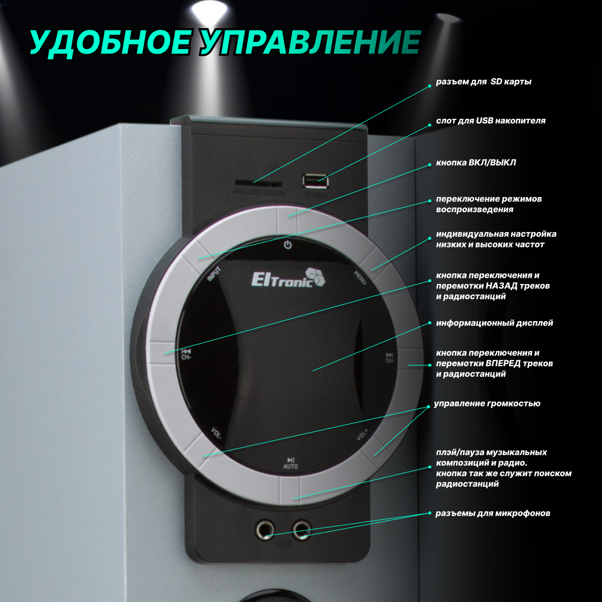 Колонки 2.0 Eltronic 20-81 Home Sound динамик 6шт/2х8"; 2х4"; 2х1.5" комплект 2 колонки серебро