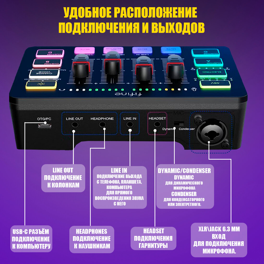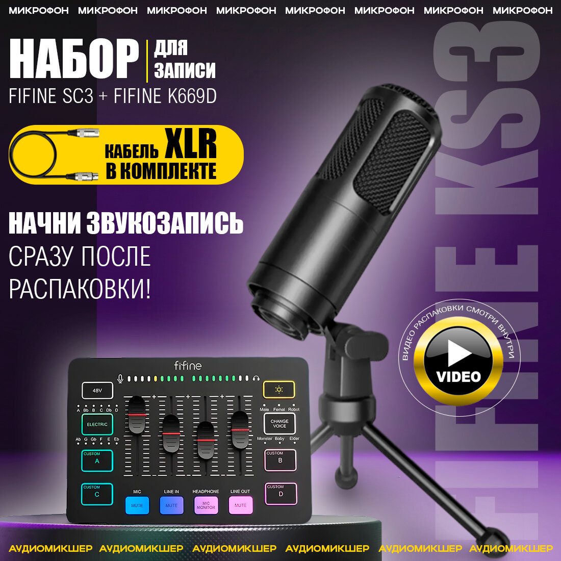 Комплект микрофон и звуковая карта FIFINE KS3 интересное: