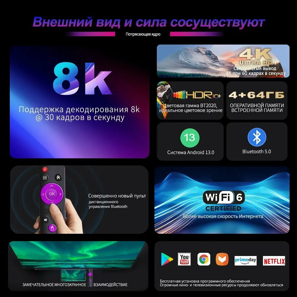Тв приставка gvigors rk H96 MAX RK3528 Android, 4 ГБ/64 ГБ, Wi-Fi, Bluetooth интересное: