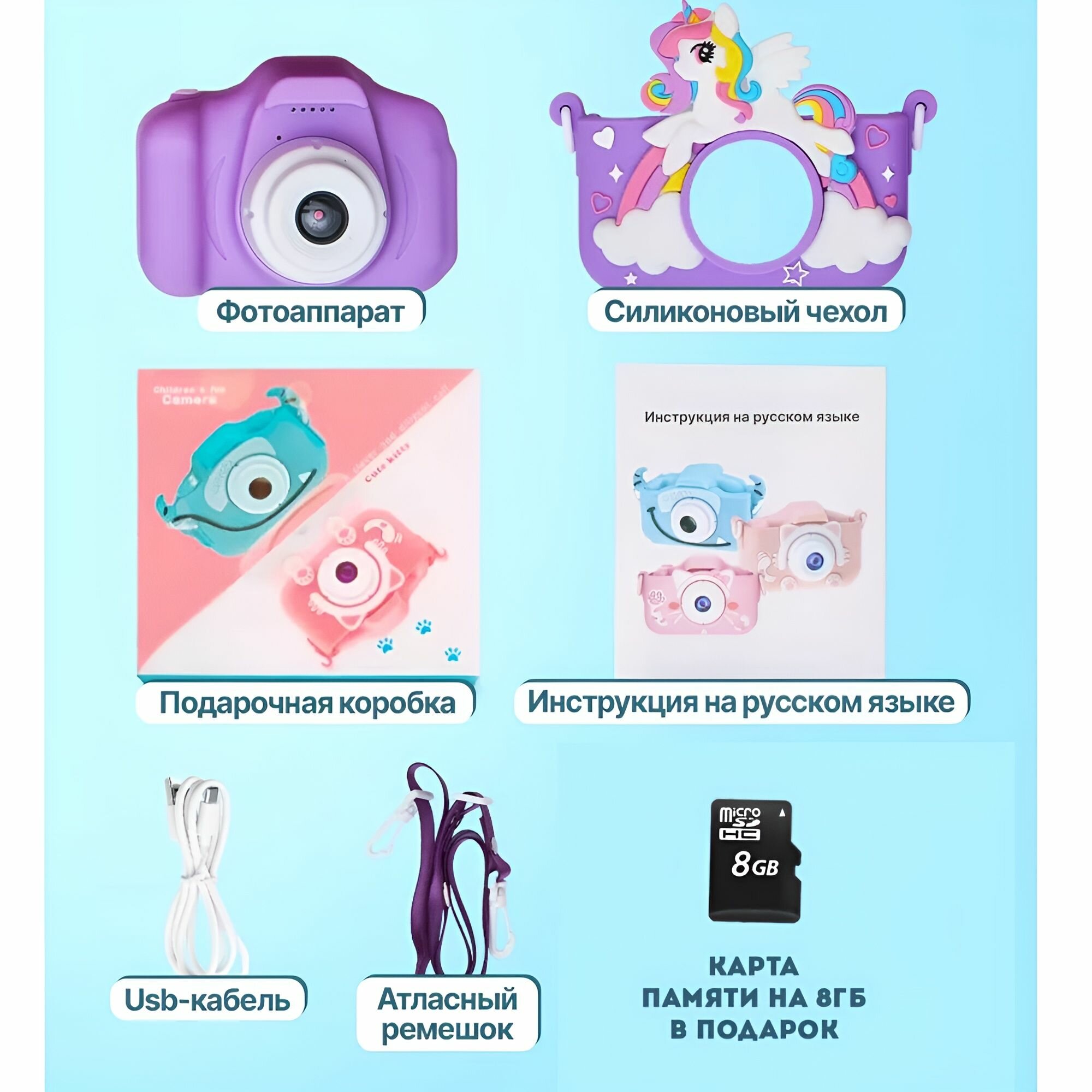 Детский фотоаппарат Единорог + карта памяти 8Gb интересное: