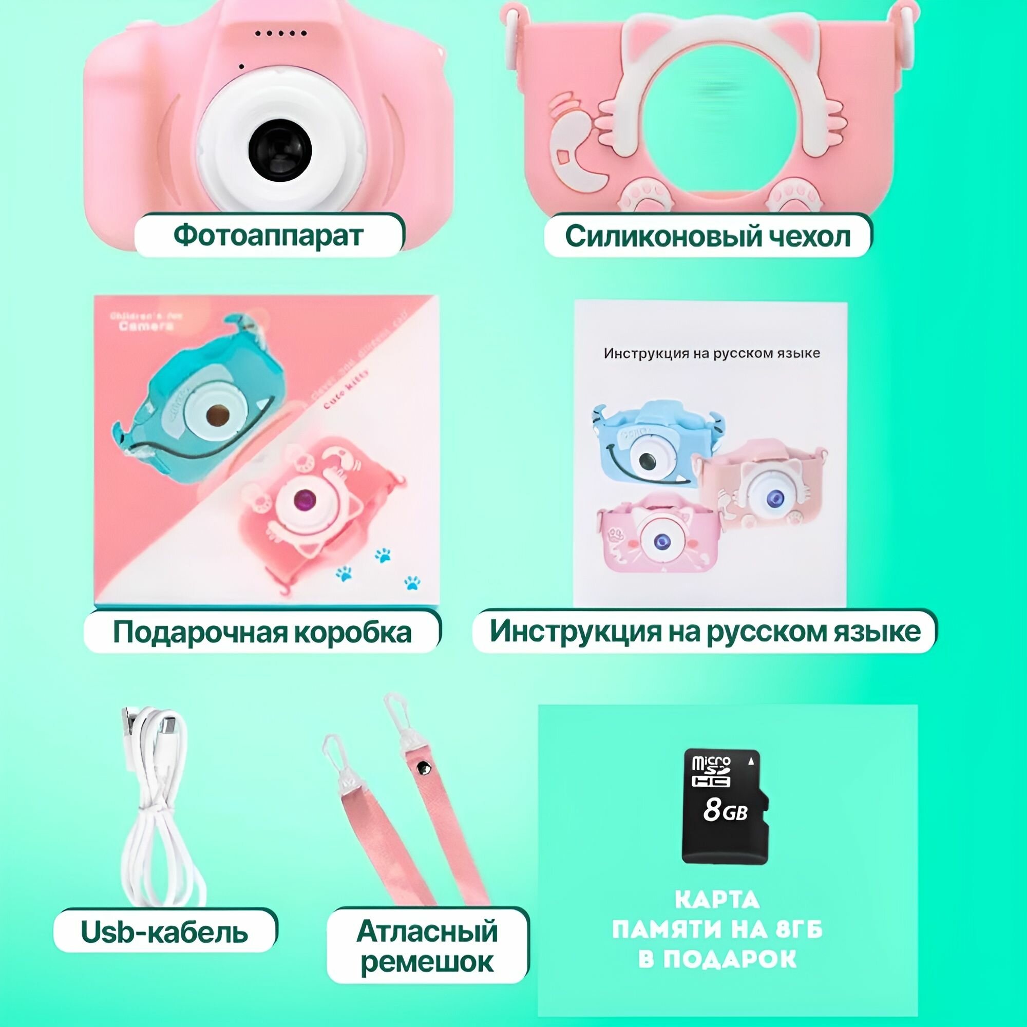 Детский фотоаппарат Котик + карта памяти 8Gb интересное: