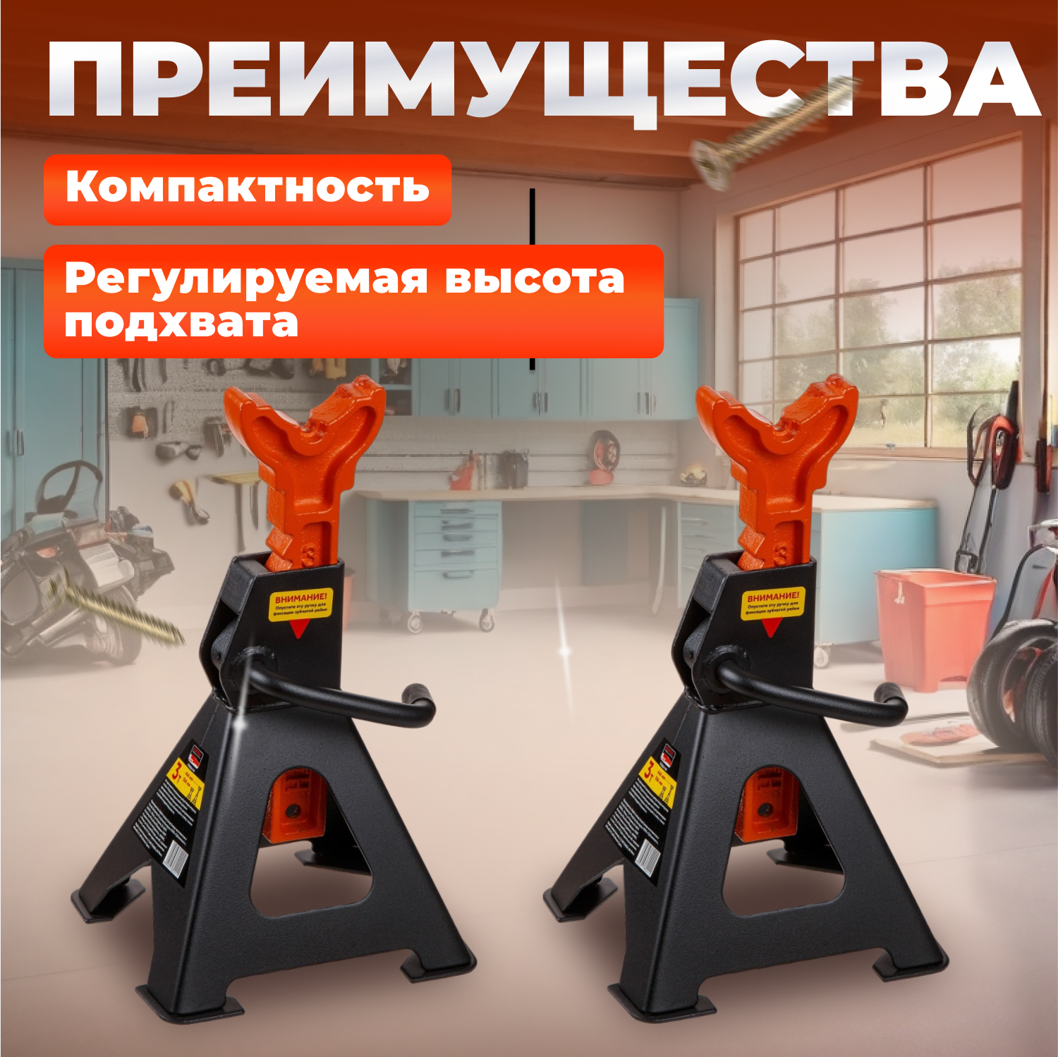 Стойка-поддомкратник 3т (2 шт) STARTUL AUTO (ST8024-04) (h min 304мм, h max 444мм, подставки под машину регулируемые) интересное: