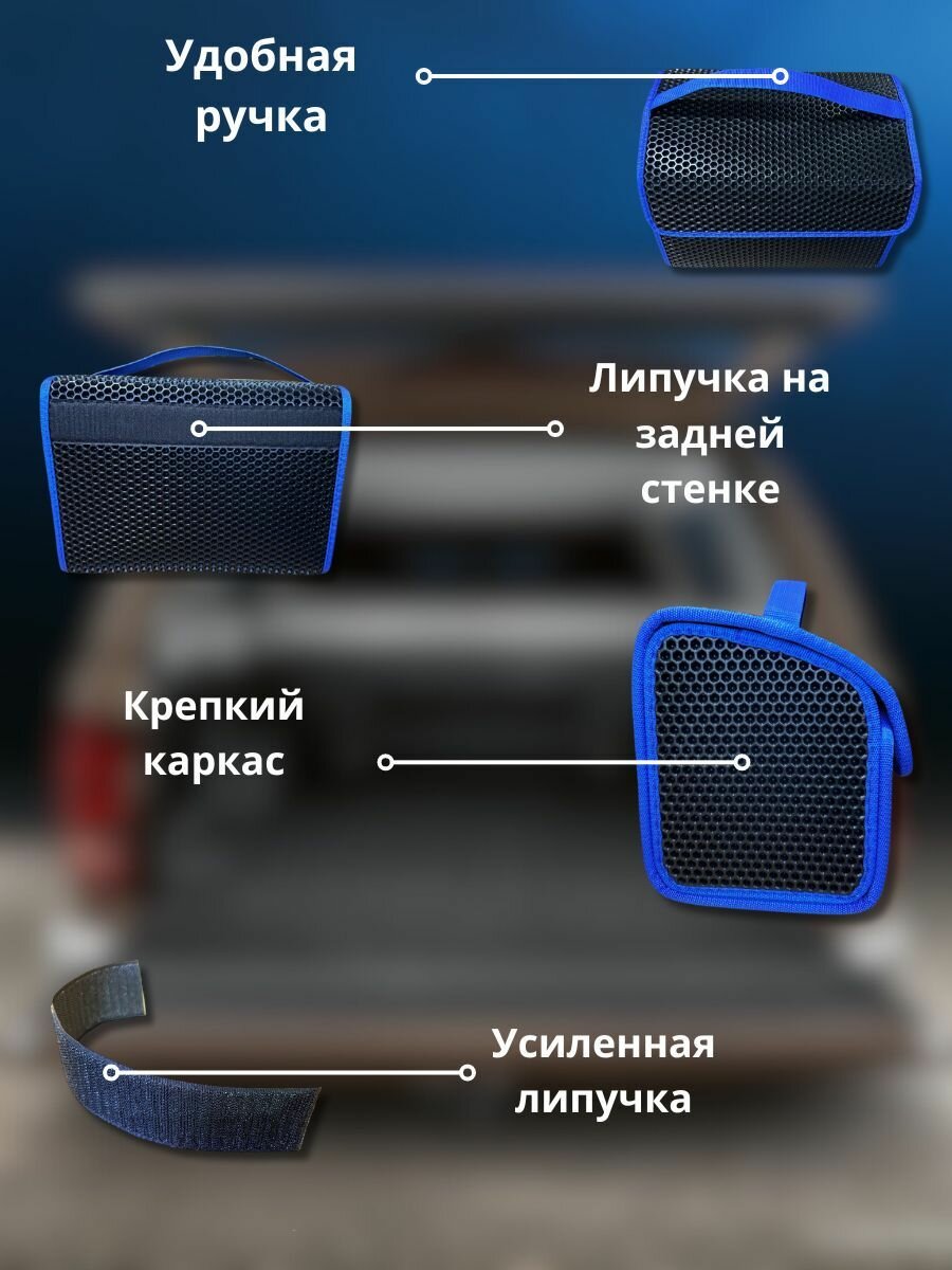 СохранитьОрганайзер автомобильный SaVakS 35х25см из ЭВА в багажник черный с синей окантовкой, Ева, Eva интересное: