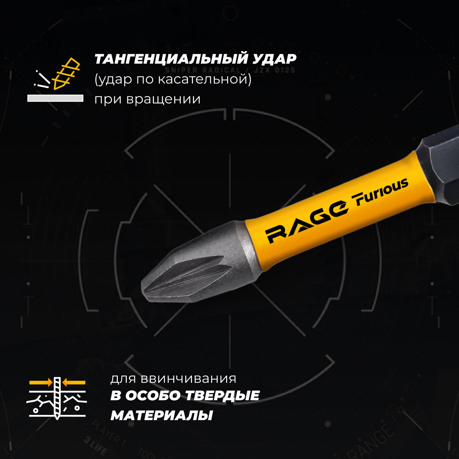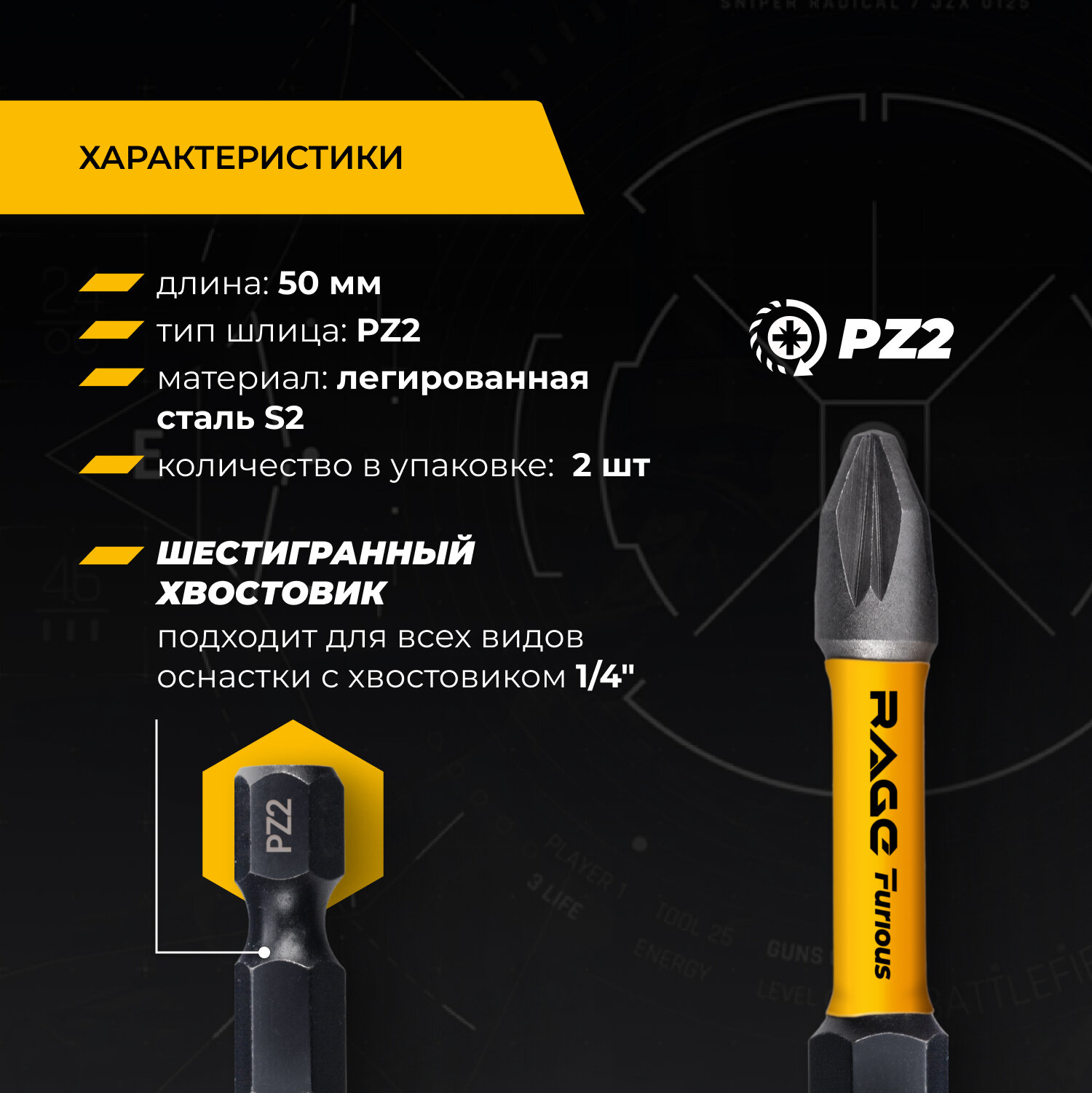 Биты торсионные IMPACT PZ2 x 50 мм 2 шт RAGE Furious интересное: