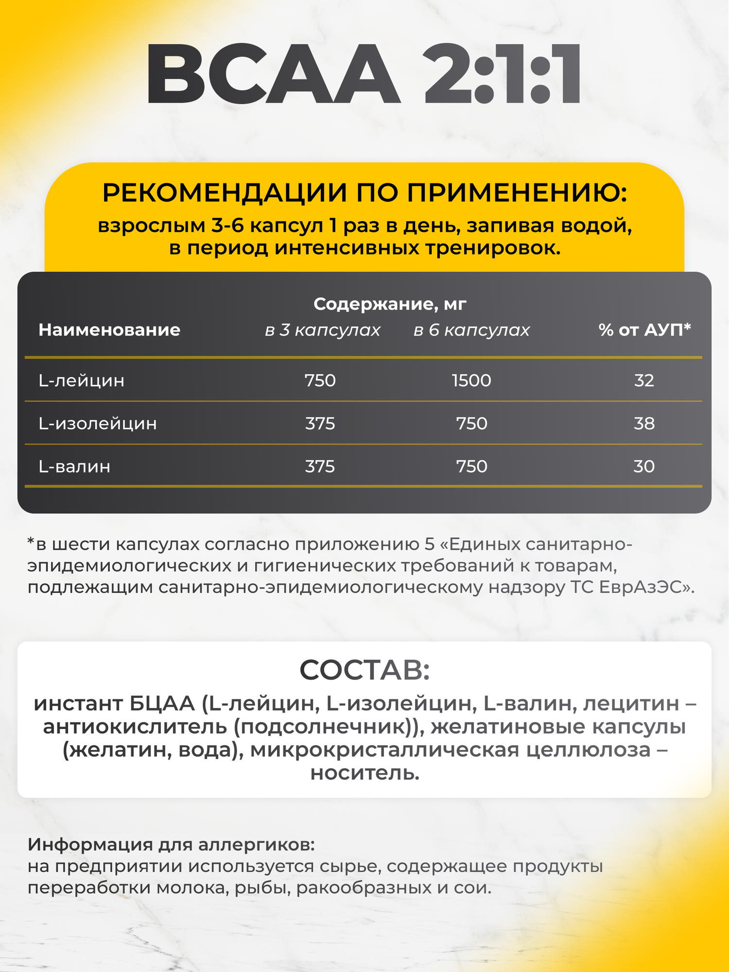 | Основной ингредиент | валин / изолейцин / лейцин |