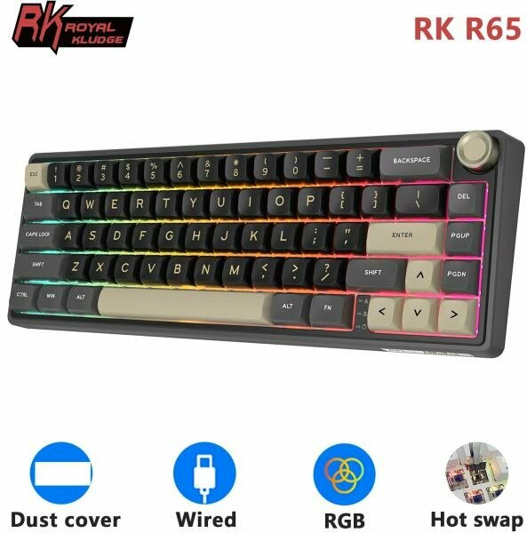 Проводная механическая клавиатура Royal Kludge RK65 цвет Phantom, RGB, hot swap, кейкапы без подсветки символов, линейные свитчи (RK Chartreuse) интересное: