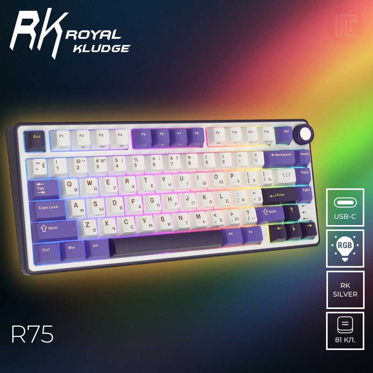 Купить Клавиатура ROYAL KLUDGE R75 механическая компактная (75%) 81 клавиша, проводная, Gasket Mount, цвет Phantom (switch RK Silver)