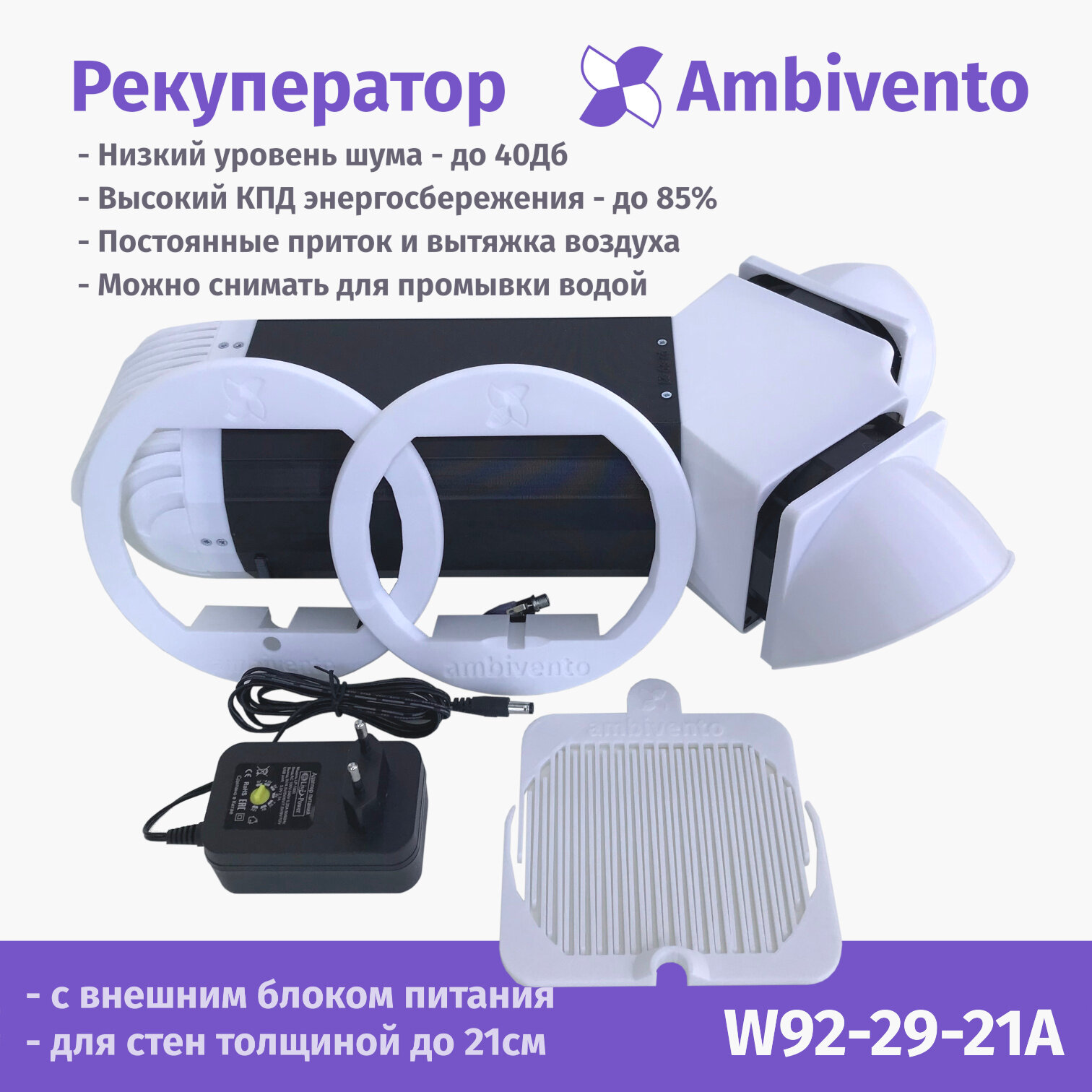 Купить Съемный рекуператор воздуха Ambivento для стен толщиной до 21см с внешним блоком питания