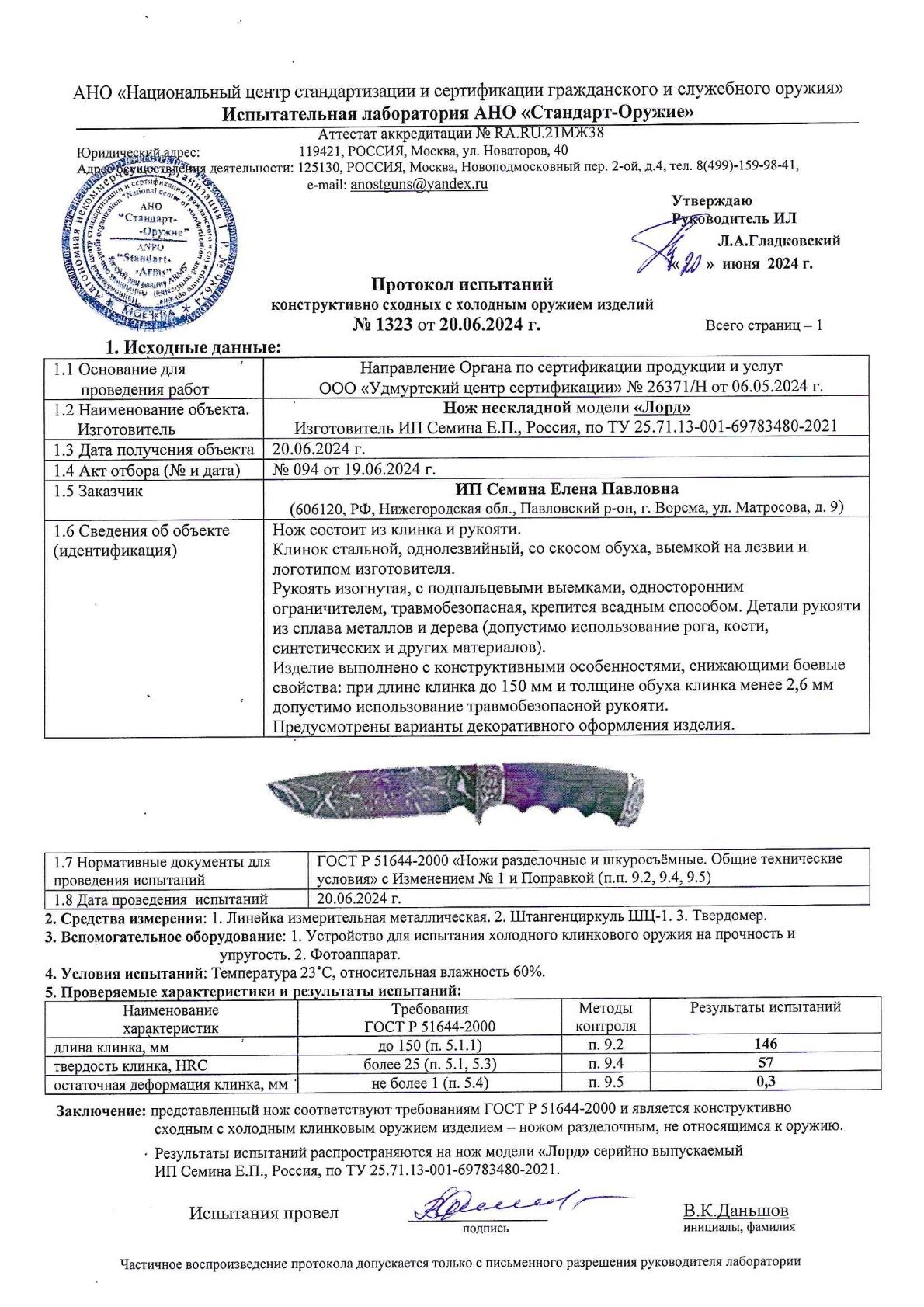 | Характеристики ножа | |