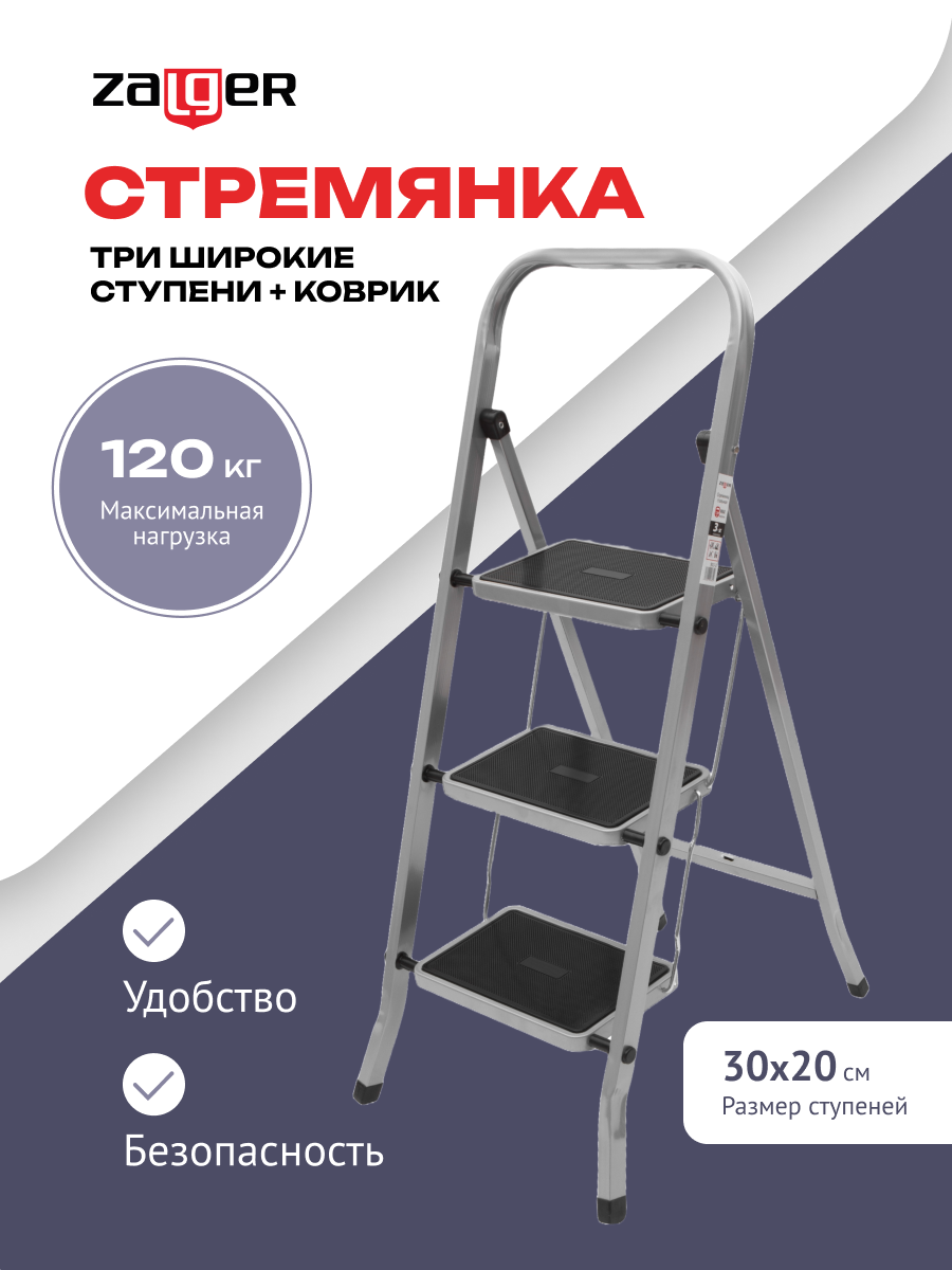 Лестница-стремянка ZALGER 511-3 3ст. сталь интересное:
