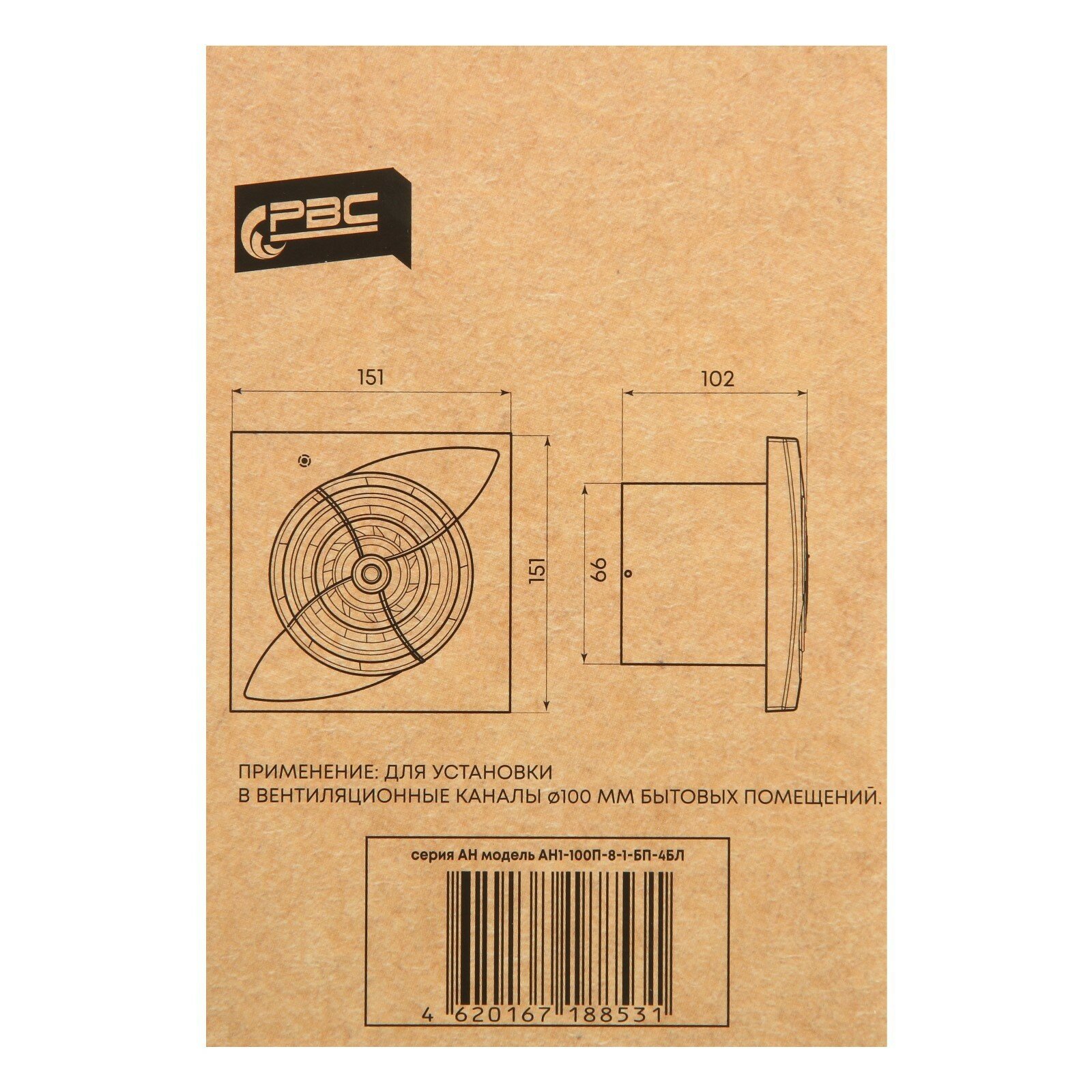 Вентилятор вытяжной тихий РВС Полярис 100, энергосберегающий, 8 Вт, 24 дБ, 95 м3/ч