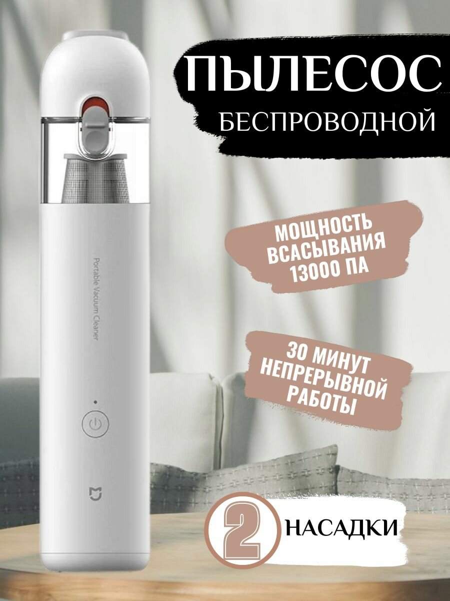 Купить Пылесос портативный автомобильный Xiaomi Mijia Vacuum Cleaner mini, ручной пылесос xiaomi, режим Турбо