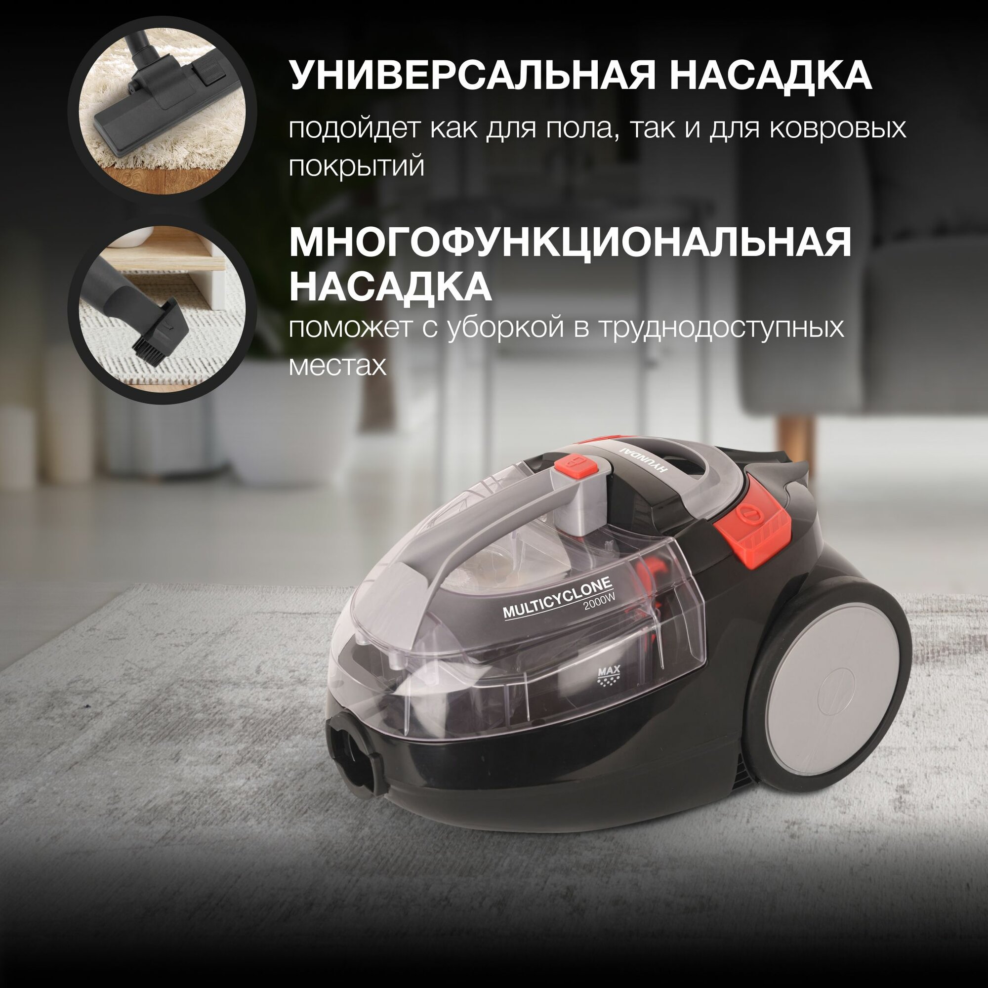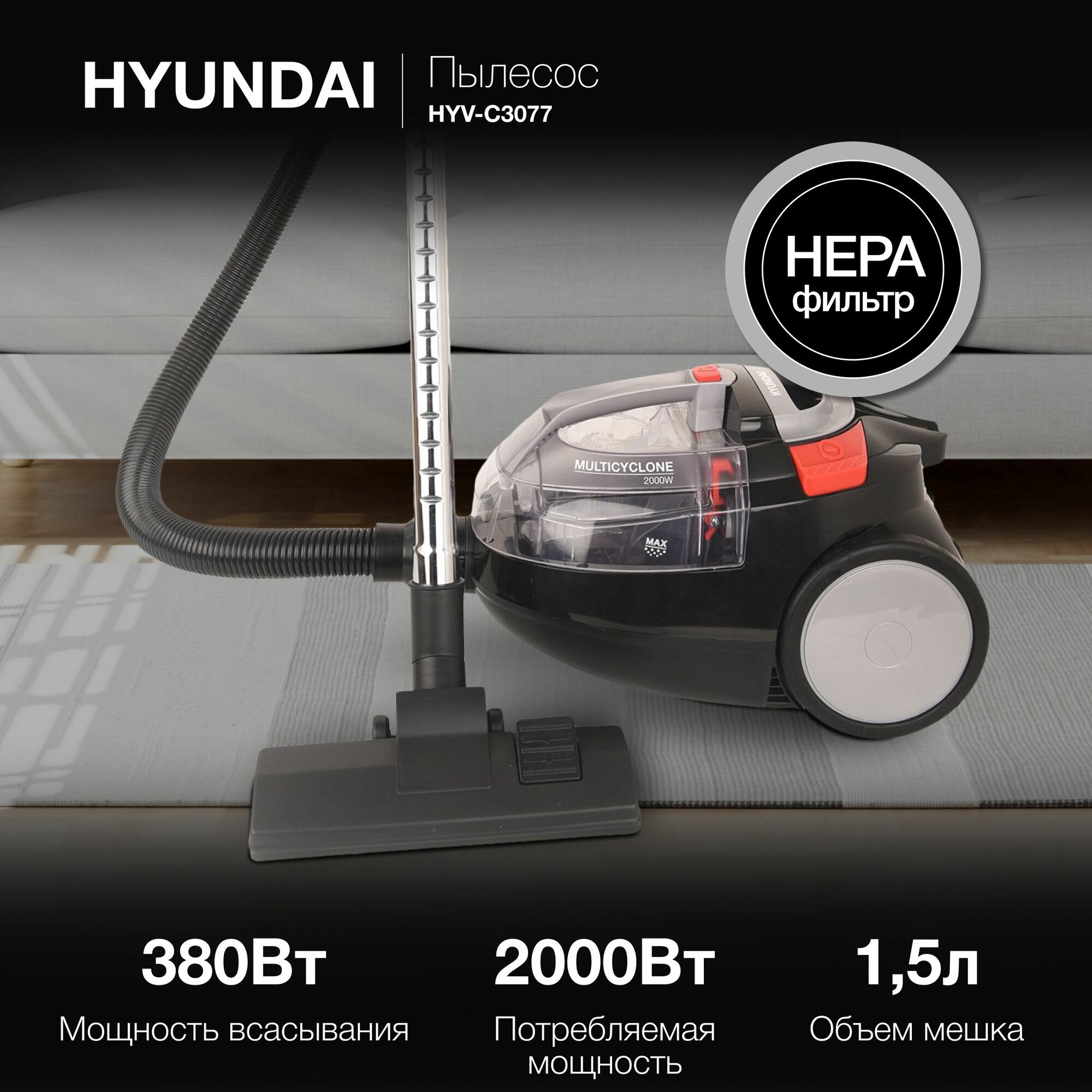 Пылесос Hyundai HYV-C3077 черный интересное: