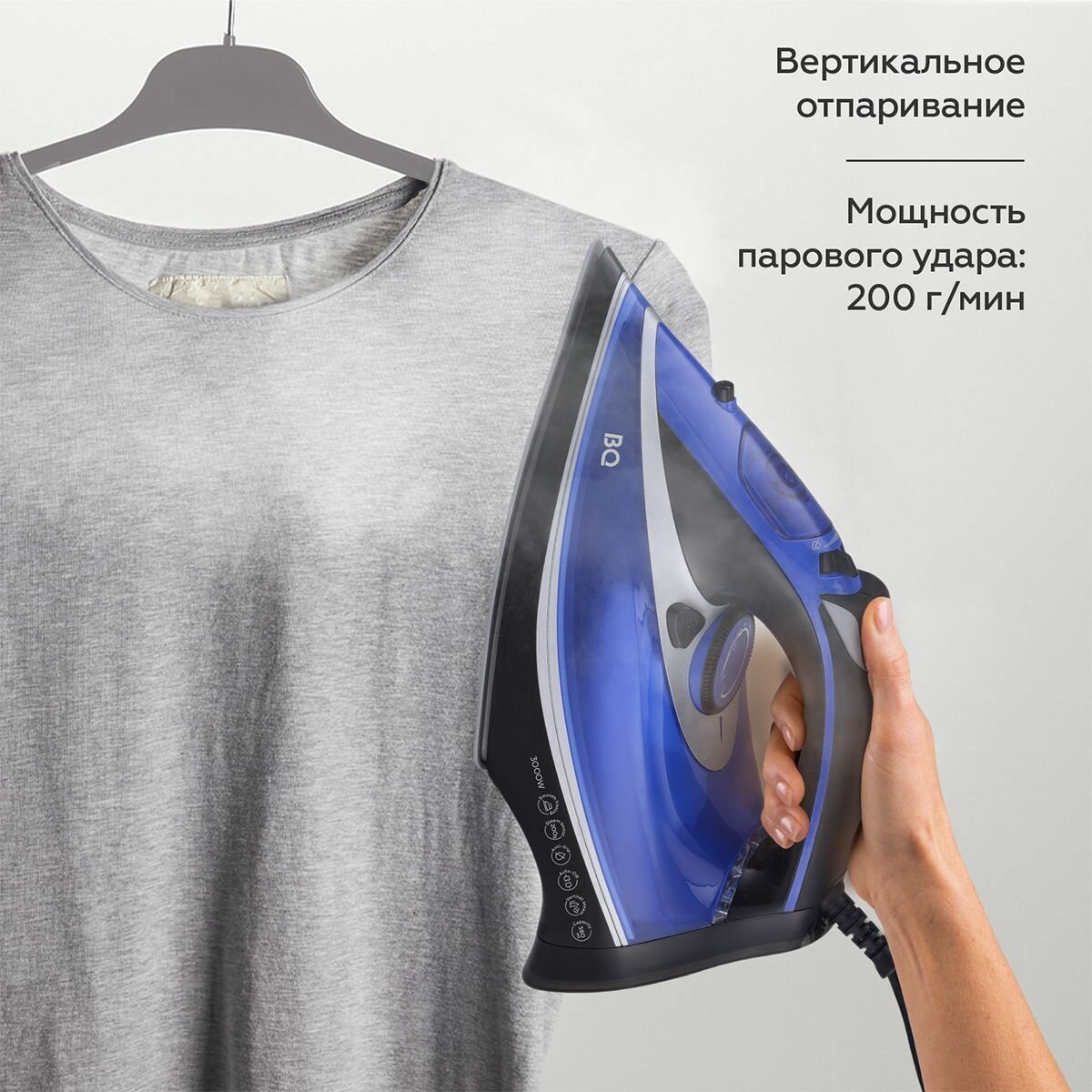 Утюг с вертикальным отпариванием BQ SI1004 Черно-голубой. Мощность 3000 Вт