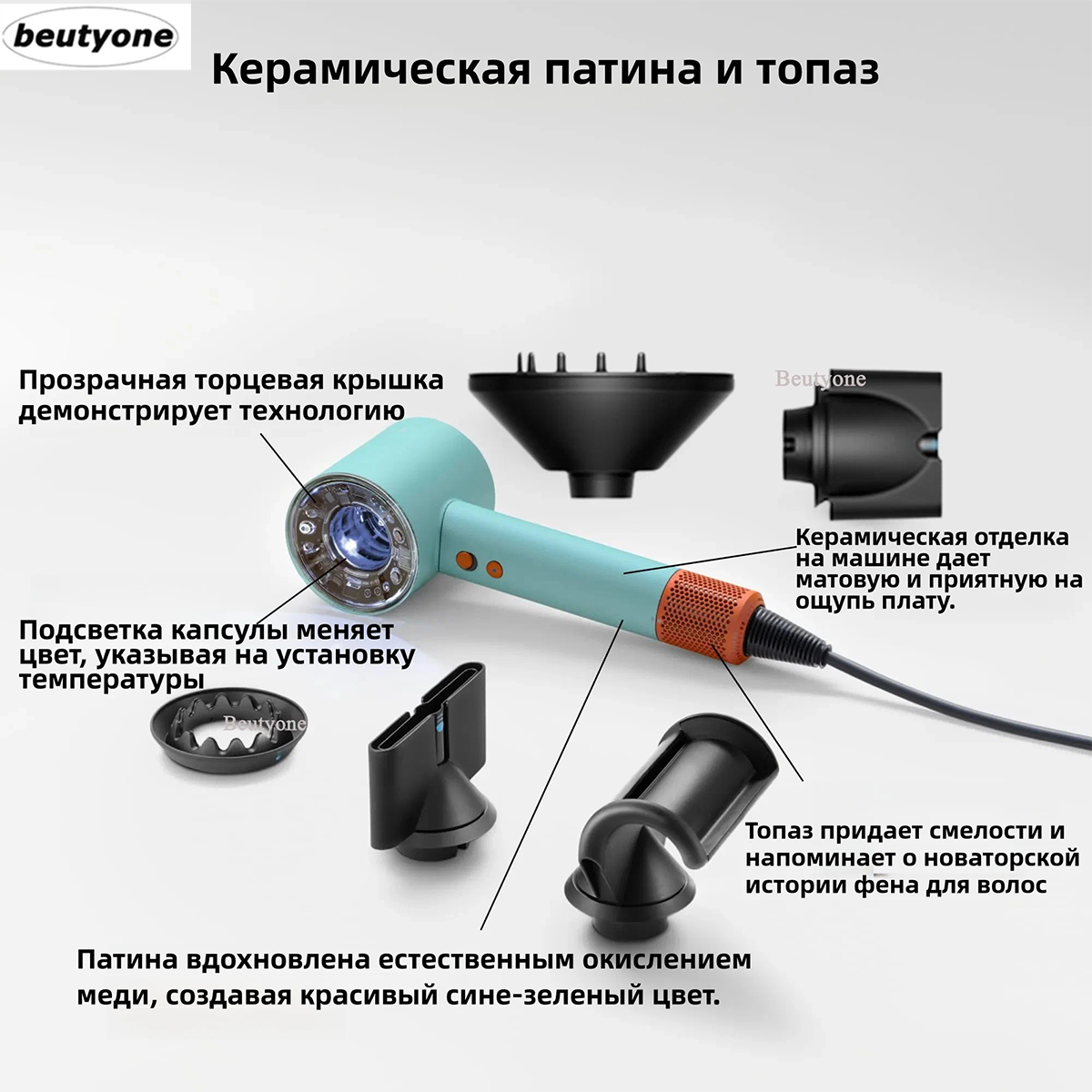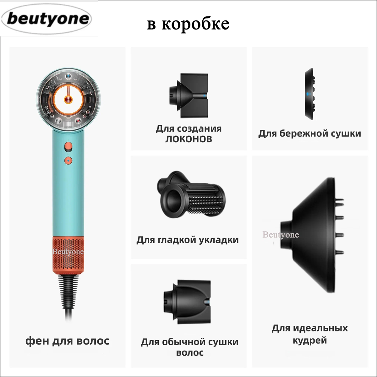 【2025 Новычка】фен для волос beutyone 5 В 1, с насадками для укладки, стайлер для волос, скоростей 3, голубой