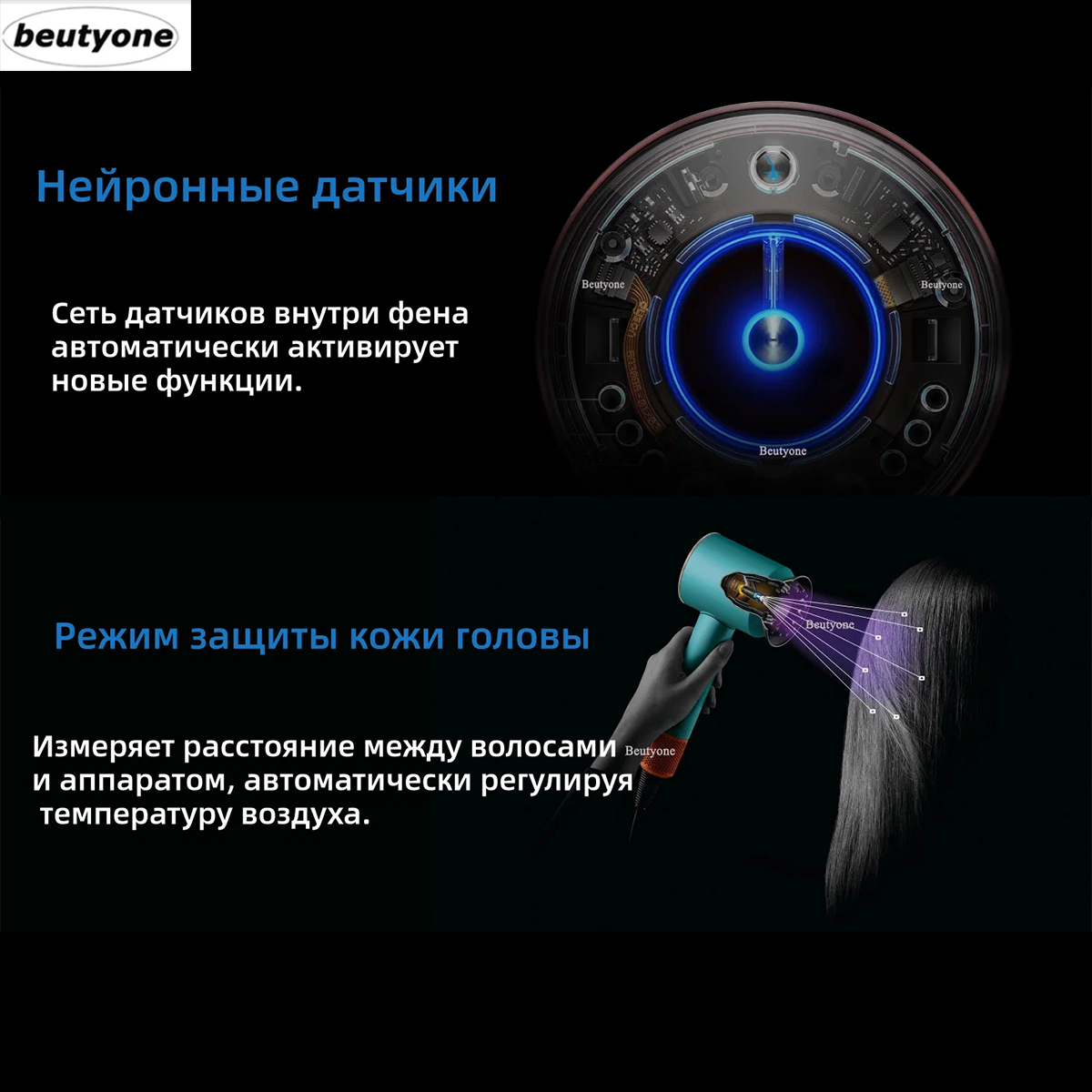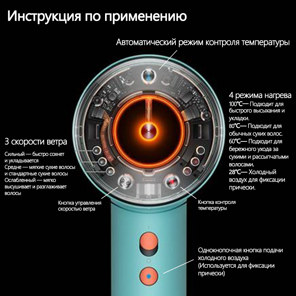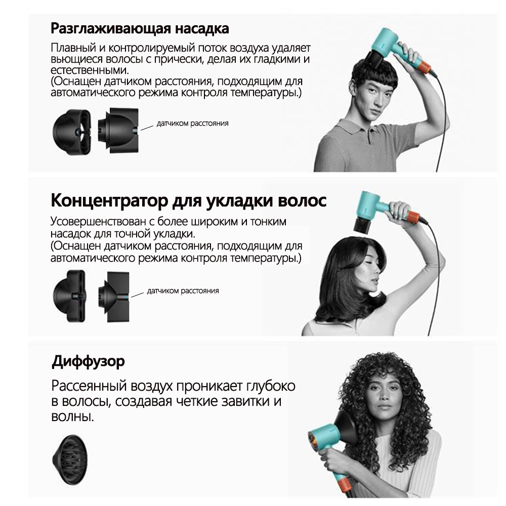 | Дополнительные функции | автоматическое вращение насадки / ионизация / подача холодного воздуха |