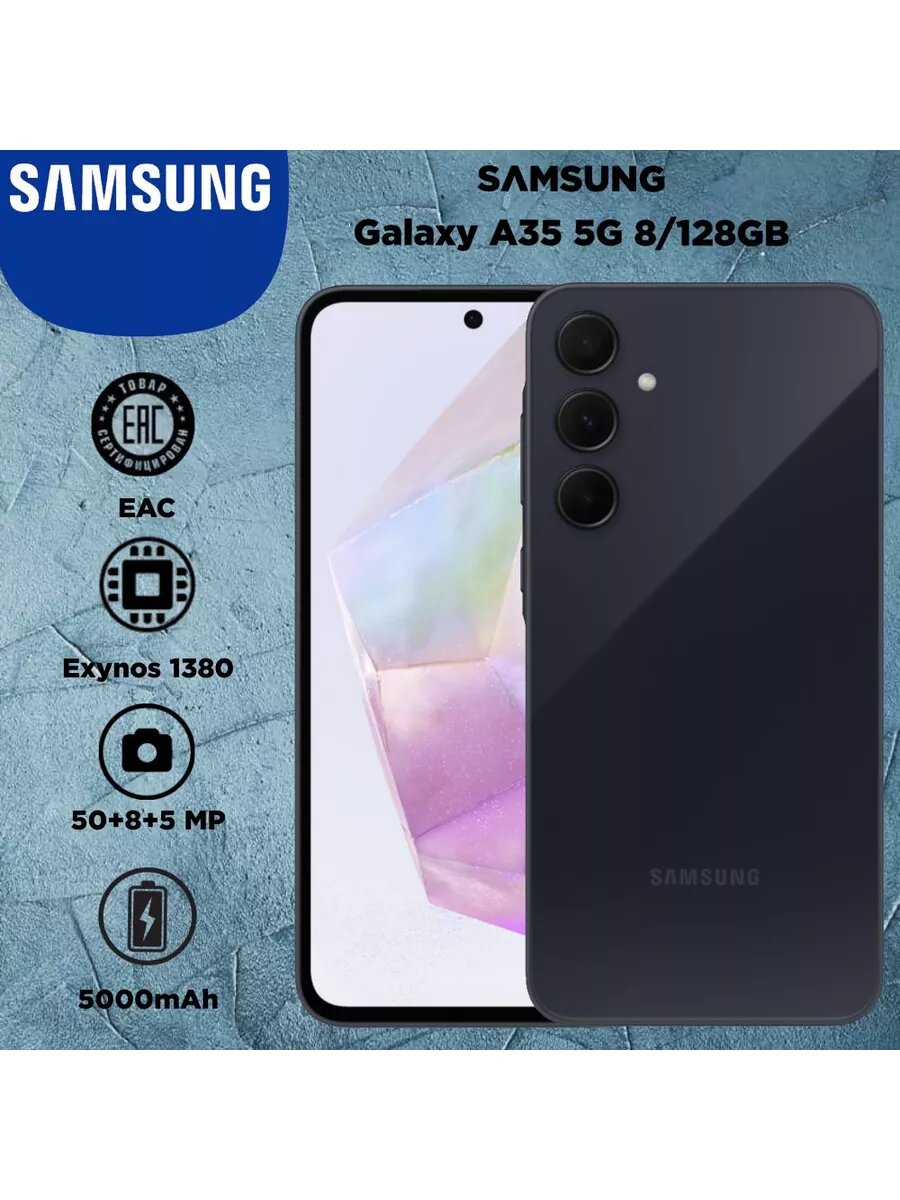 Смартфон Samsung Galaxy A35 5G 6/128Gb SM-A356E Темно-синий (SM-A356EZKMMEA) Android 14, 6.6", 5G