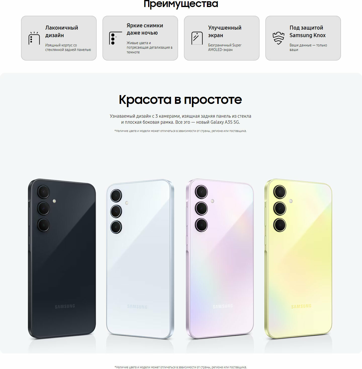 Смартфон Samsung Galaxy A35 5G 8/256 ГБ, Ice Blue