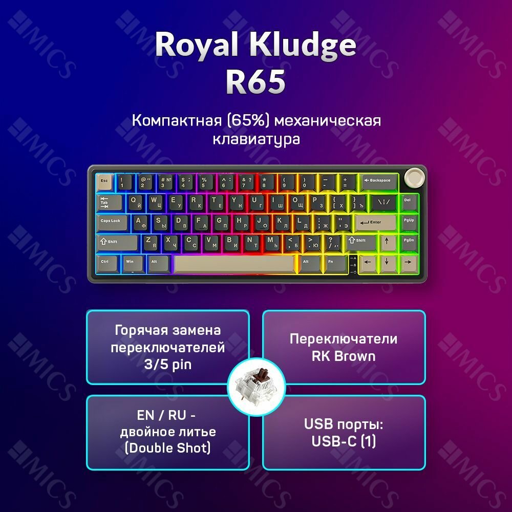 Проводная механическая клавиатура Royal Kludge RK65 цвет Phantom, RGB, hot swap, кейкапы без подсветки символов, тактильные свитчи (RK Brown) интересное: