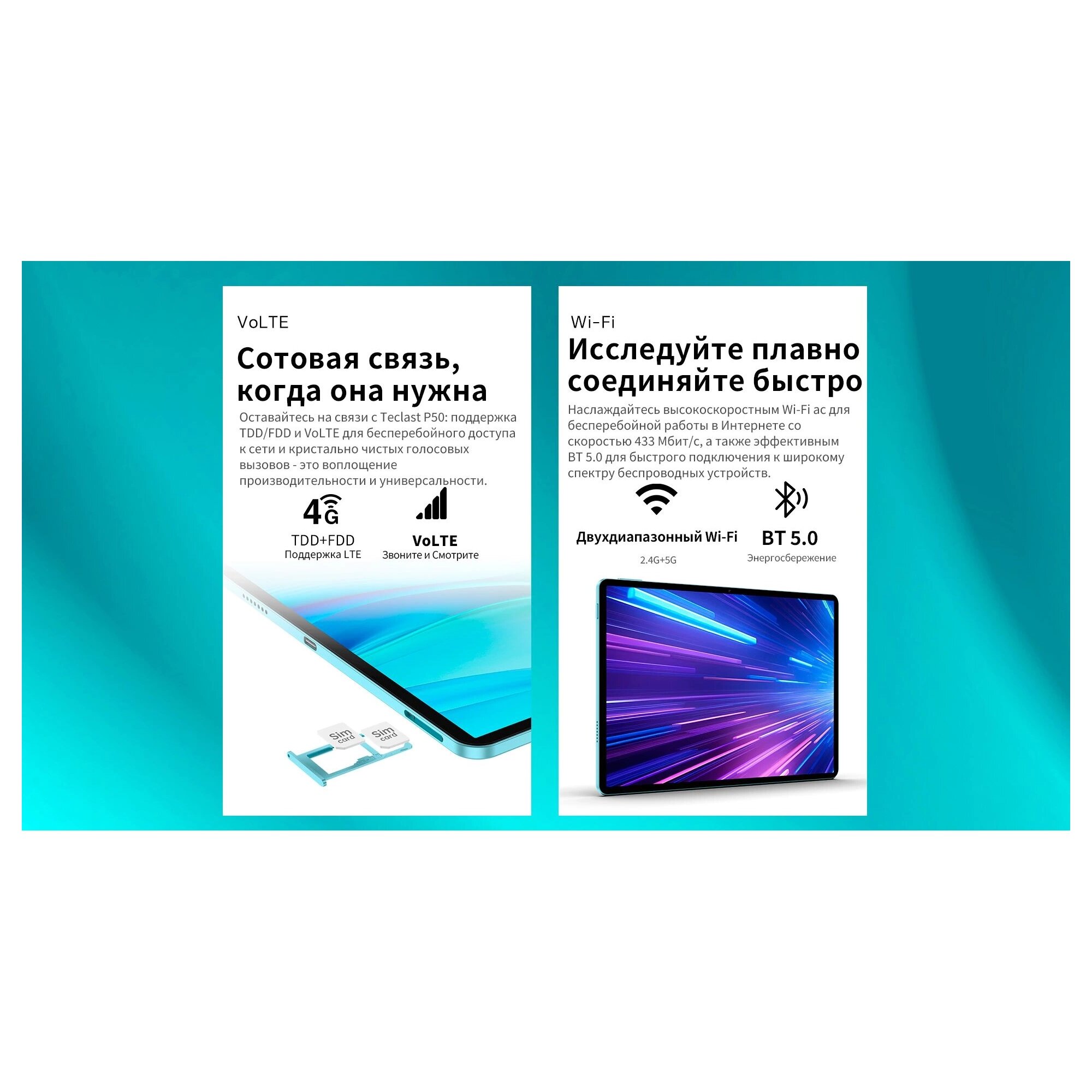 11" Планшет TECLAST P50 6/128 GB 90Гц, 1280 x 800, Android 14, LTE,голубой