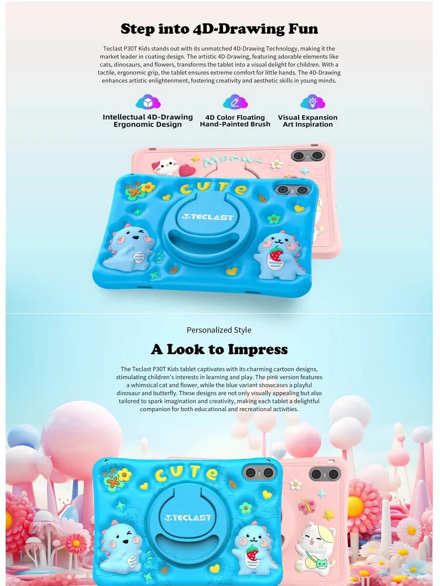 Купить 10.1" Детский планшет TECLAST P30T Kids 4/64 GB A523 Wi-Fi, 1280 x 800, Android 14, розовый
