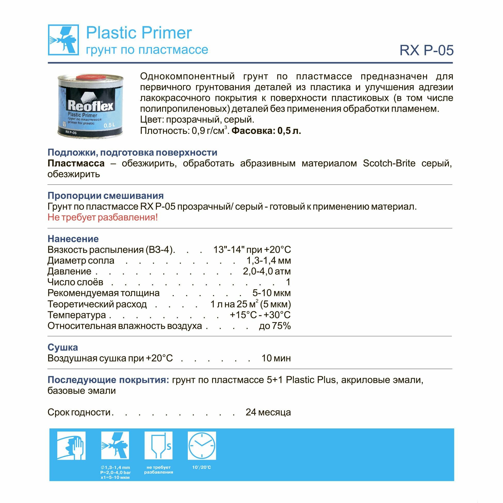 Грунт по пластмассе 1К Reoflex RX P-05 Plastic Primer прозрачный 0,5 л. интересное: