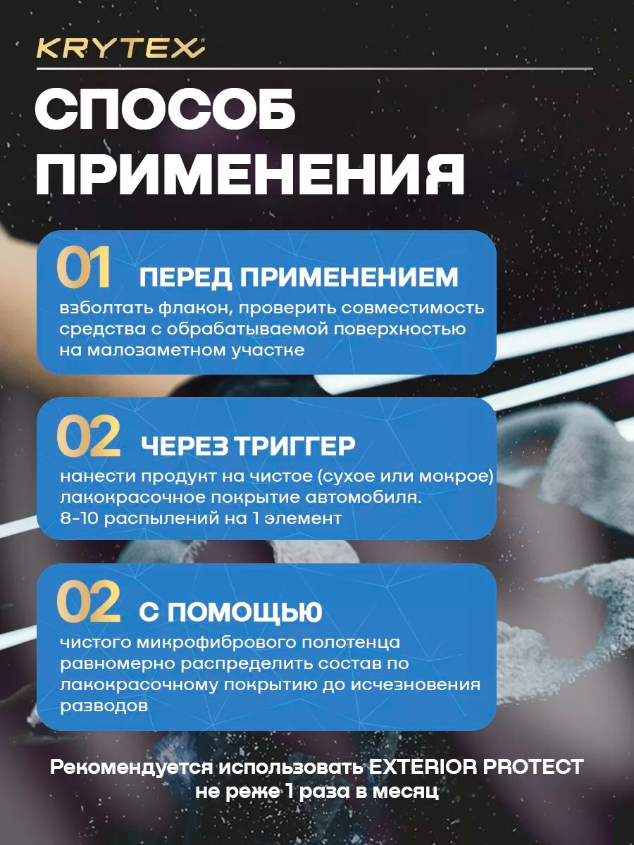 Быстрая Керамическая защита покрытие KRYTEX EXTERIOR PROTECT для кузова автомобиля (ЛКП) Гидрофобизатор на водной основе
