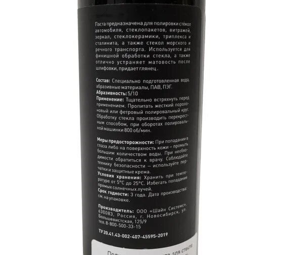 | Способ применения | Тщательно встряхнуть перед применением. Пропитать жесткий поролоновый или фетровый полировальный круг. Обработку стекла производить перекрестным способом, при оборотах полировальной машинки 800 об/мин. |