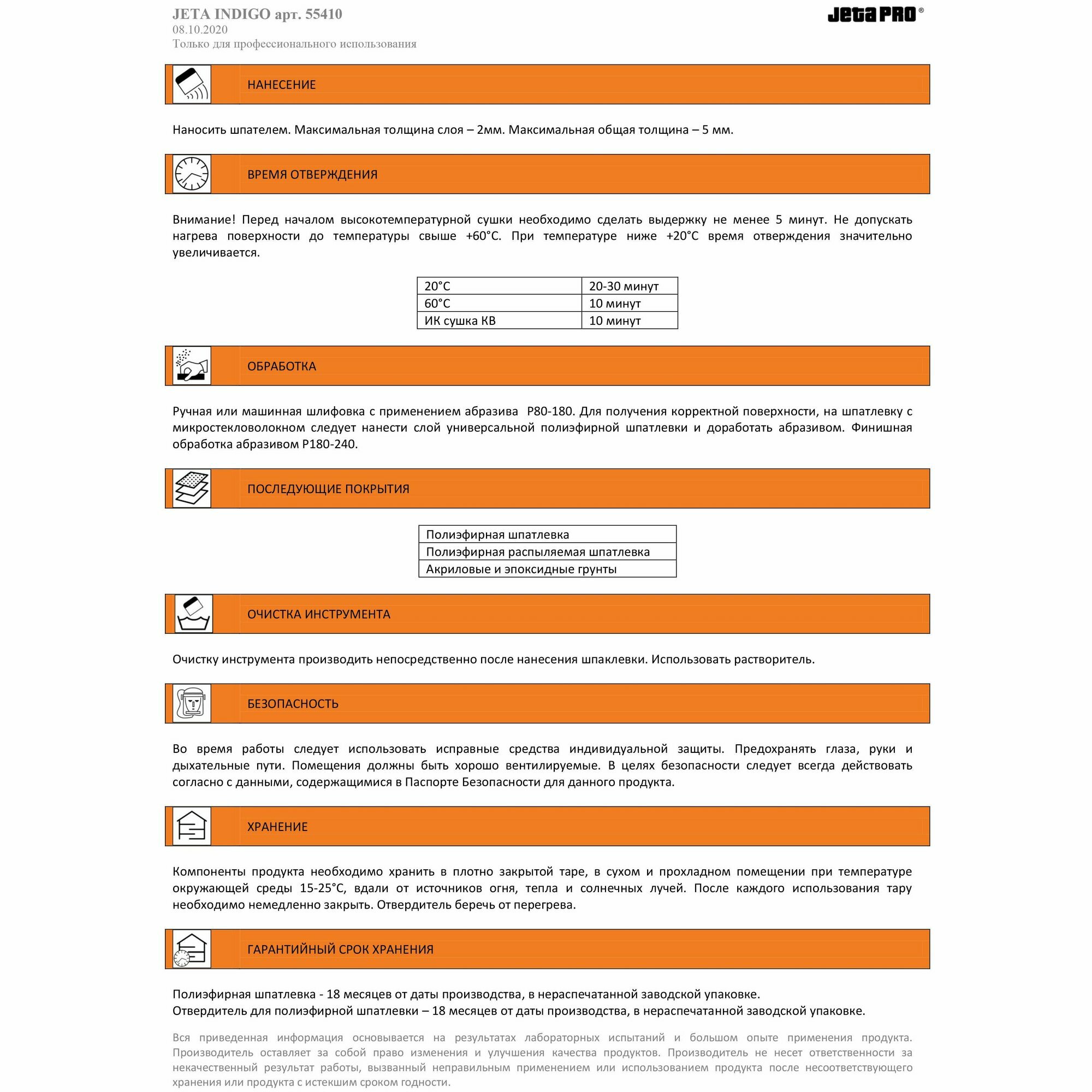 Ниже Вы можете прочитать отзывы на Шпатлевка полиэфирная JETAPRO INDIGO 55410 с микростекловолокном 1,8кг, ознакомится с подробными характеристиками, посмотреть интересные обзоры и фотографии на Шпатлевка полиэфирная JETAPRO INDIGO 55410 с микростекловолокном 1,8кг.