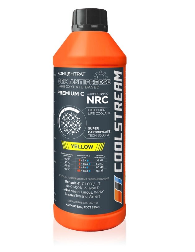 Антифриз COOLSTREAM NRC, 5 кг, желтый (Renault & Lada Largus), CS-010102-YE