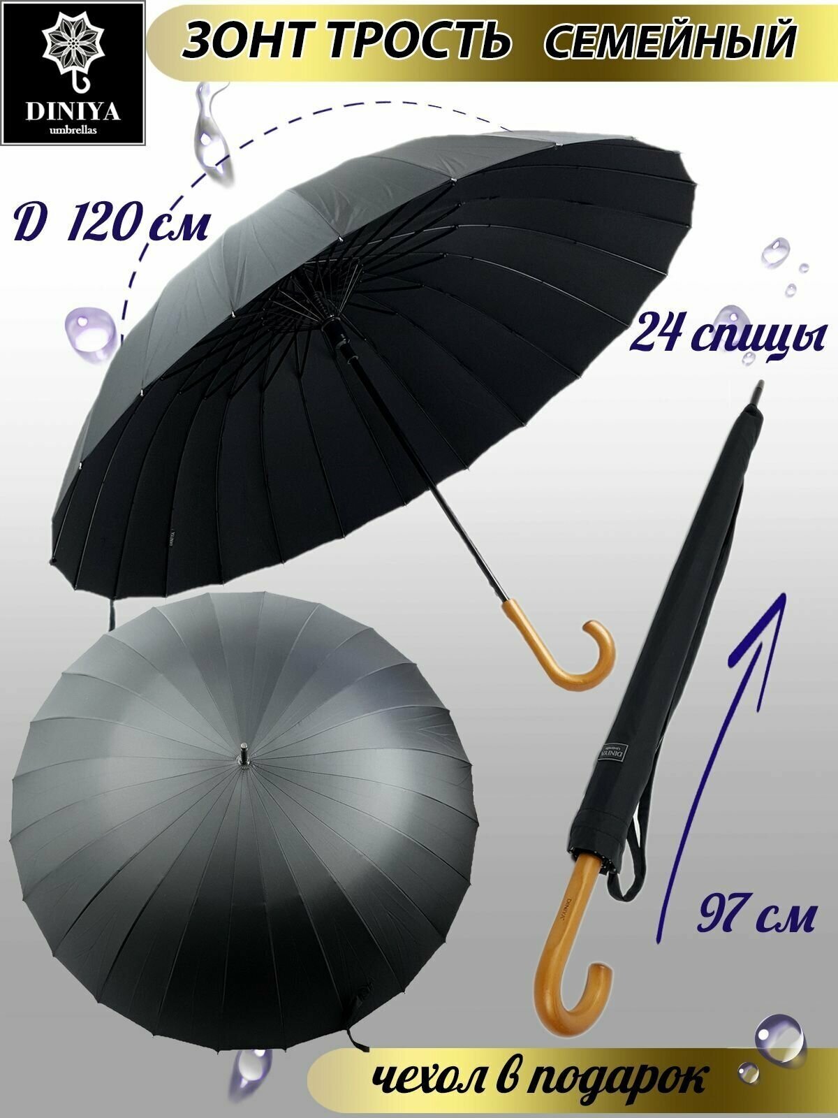 Зонт-трость семейный 24 спицы Premium - (2762) интересное: