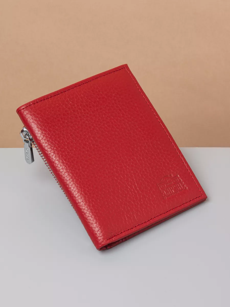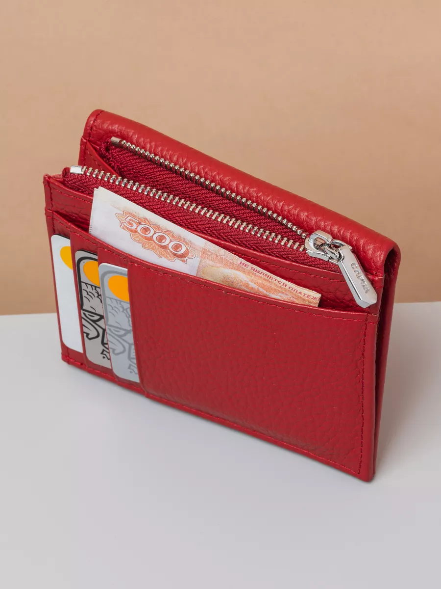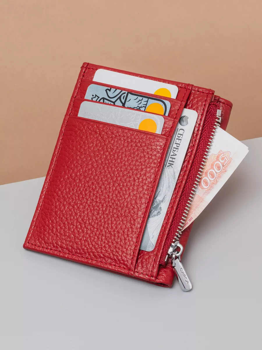 Купить Кошелек маленький кожаный, портмоне для карт из натуральной кожи, красный